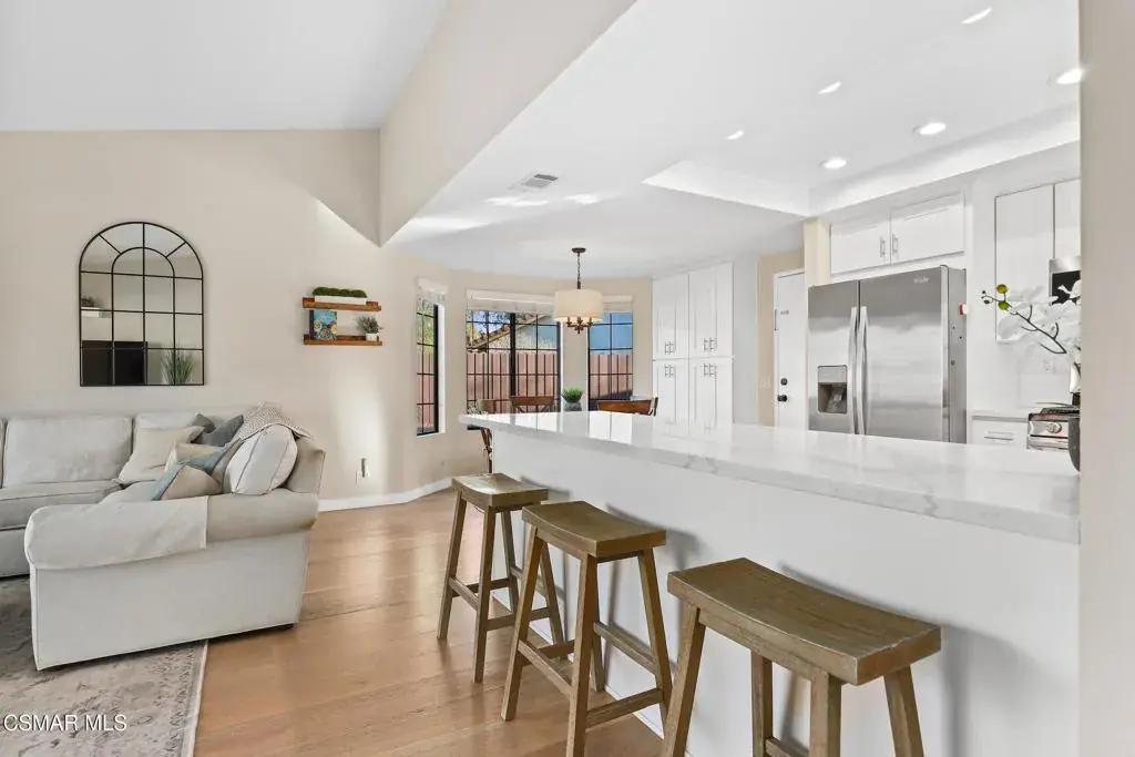 Charming Single-Story Moorpark Home on a Quiet Cul-de-SacNestled at the end of a peaceful cul-de-sac, this beautifully remodeled 3 bedroom, 2 bath Moorpark home combines comfort, style, and modern living. Situated on a generous 10,281 sq. ft. lot with no HOA, it offers privacy, space, and an immediate sense of welcome.Inside, European wood flooring, vaulted ceilings, and an open, airy layout create a bright and inviting atmosphere. The formal living room, anchored by a cozy fireplace and adorned with plantation shutters, is perfect for relaxing evenings or gathering with family and friends.At the heart of the home, the chef’s kitchen shines with quartz countertops, new shaker cabinetry, stainless steel appliances, and a sunlit dining area. Its seamless flow to the family room makes entertaining effortless. Whether it’s hosting dinners, enjoying casual meals, or spending quality time together.The primary suite is a private retreat featuring a beautifully updated bathroom completed in July 2025 along with a walk-in closet. Two additional bedrooms are light-filled and versatile, ideal for family, guests, or a home office. The hall bath, also recently updated, boasts modern, high quality finishes.Step outside to an expansive backyard oasis. The patio invites outdoor dining, relaxing, or entertaining, while the spacious yard features stucco retaining walls and built-in planters, providing structure, charm, and opportunities for a pool, a sports court or just use your imagination. These thoughtful outdoor touches create a private and inviting environment perfect for both play and relaxation.Thoughtful updates throughout the home include newer kitchen and bathrooms, new carpet, European wood floors, fresh interior and exterior paint, updated landscaping, a tankless water heater, and a two-car garage. Every detail reflects the care and love the sellers have invested over the past decade.More than just a house, this home is a place where memories are made, laughter is shared, and life is truly enjoyed. Discover the warmth, charm, and thoughtful design that make this Moorpark residence exceptional and imagine calling it your own.