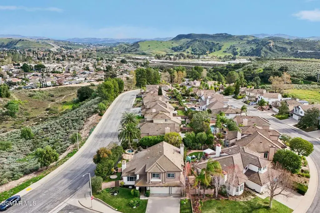 Welcome to this amazingly beautiful two-story North Moorpark home situated on a sweeping corner lot offering scenic VIEWS by day and evening along with an entertainer’s backyard offering a sparkling pool, spa and waterfalls!Built in 1990, this 3 bedrooms, 2.5 bathrooms home offers spacious living areas, and a generous lot size of approximately 8,100 sqft with 2,174 sq ft of interior living space.The private backyard is designed for indoor-outdoor California living with pool, spa, waterfalls, and a spacious patio with built-in BBQ island with refrigerator. Professionally landscaped grounds with low-maintenance turf and outdoor lighting create a relaxing setting to enjoy year-round.The kitchen is beautifully upgraded with granite countertops, stainless steel appliance, stylish cabinetry, and opens up to a warm and inviting family room with a fireplace. Formal dining with plenty of windows offering great views of the mountains/city. Living room with a fireplace and vaulted ceilings. Primary bedroom with vaulted ceilings, views of the mountains/city, a spacious bathroom with separate tub and shower and a functional walk-in closet. All bedrooms with well designed closets. Interior Laundry Room leads to a 3 car attached garage that functions as a game room, work area and storage. Along with a tankless water heater. Pool/Spa/WaterFalls/Boosters/Ext Lights, HVAC and Cameras controlled by apps. Located within the Moorpark Unified School District and close to local parks, shopping, and commuter routes, this home combines comfort, functionality, and a desirable neighborhood living.