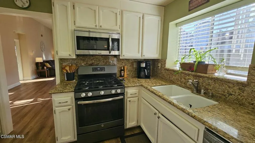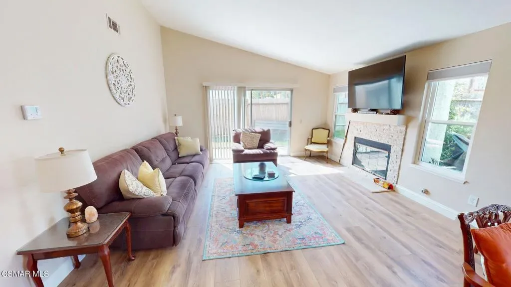 Welcome to this beautiful one-story Moorpark home offered fully furnished with all dishware, furniture, TVs, and more. This three bedroom two bath home is located on a cul-de-sac street features two car garage, new central heat and air backyard with gardening area inside you’ll find high vulted ceilings, vinyl flooring, fireplace in living room, updated kitchen with granite counters and stainless appliances, family room area with couch and TV, primary bedroom with sliding door to the rear yard, dual sink and primary bathroom with two closet one walk-in. Down the hall, second bathroom, two more bedrooms, one with a built-in desk and trundle bed. This beautiful home shows light and bright and ready for you to move in. Bring your suitcase and be ready to call this place home. Gardner included.