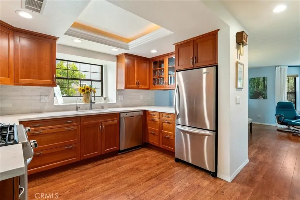 Welcome to resort-style living in Morro Bay’s desirable Bayshore Village! This beautifully remodeled two-level 3-bedroom, 2.5-bath condo offers 1,665 sq ft of sophisticated coastal living in a special end unit on a private road. The main level features an open floor plan with a super cozy living room with its own fireplace flowing seamlessly into the updated Craftsman-style kitchen and dining area. The kitchen boasts high-end appliances, custom cabinetry, and granite countertops, while engineered flooring flows throughout the main level and fresh new carpeting graces the second floor. Updated bathrooms with luxurious travertine tile accents add elegant touches throughout. Upstairs, retreat to the luxurious primary bedroom with a gas fireplace, private balcony, en suite bath, and walk-in closet—the perfect spot to enjoy your morning coffee while listening to the birds and taking in pool views with peekaboo glimpses of the bay and Morro Rock. Two additional comfortable bedrooms on the same level share a bathroom, and an upstairs laundry room adds convenience. The attached 2-car garage offers direct interior access to the kitchen for effortless unloading. Enjoy the heated spa, clubhouse, and professionally maintained grounds. Located just off Main Street and adjacent to the bay and park, you’re moments from waterfront dining, shopping, and all that Morro Bay has to offer. Turn-key and ready for you to move right in!