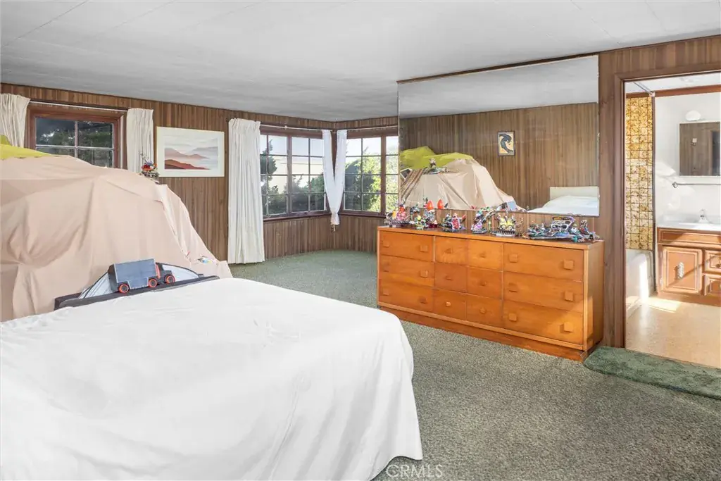 The 1930s residence offers 3,242 sq. ft. across two units, each with separate electric and gas meters. The main home includes 2 bedrooms and 2 baths with sweeping views of the bay and Morro Rock, while the secondary unit enjoys south-facing vistas across the park and waterfront.