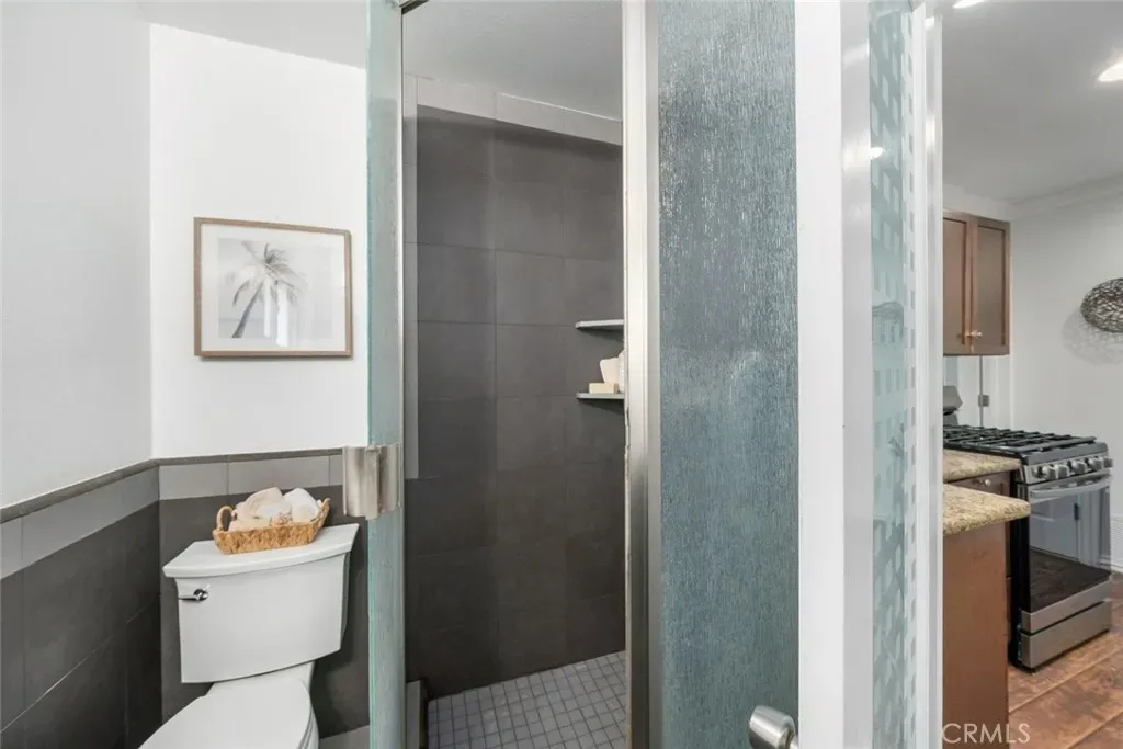 Downstairs, versatile guest quarters provide excellent flexibility with its own exterior entrance and the ability to be fully separated from the main living space. This level includes a spacious living room with fireplace, hard surface flooring, and ocean views, along with a kitchenette featuring a stove and sink. A bathroom with single-stall shower and a generously sized bedroom with ocean views create comfortable accommodations and added investment opportunities.
