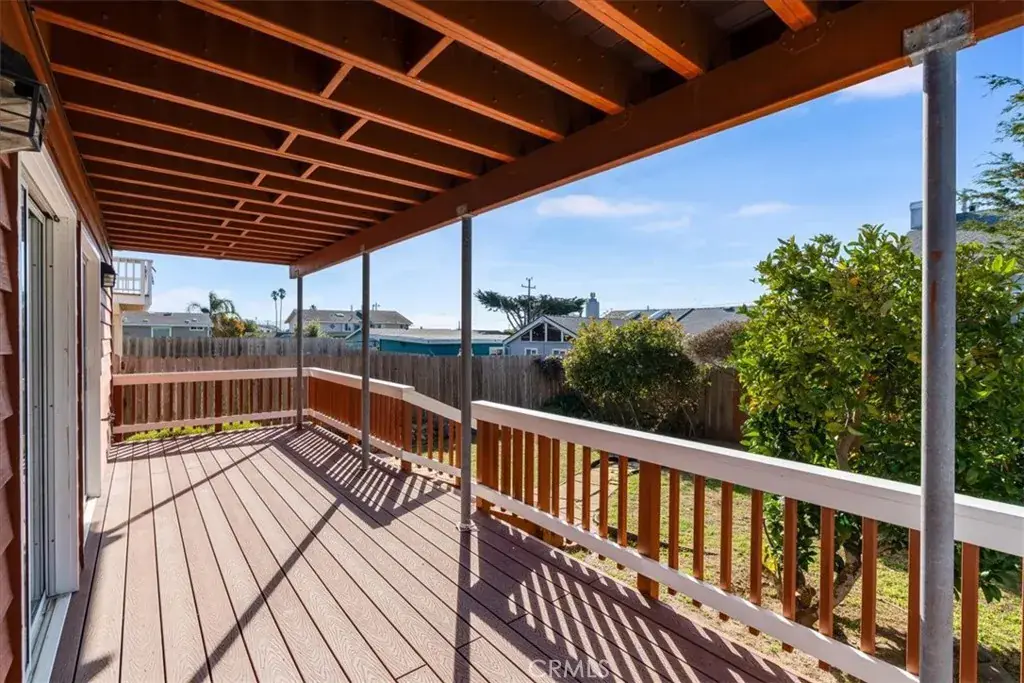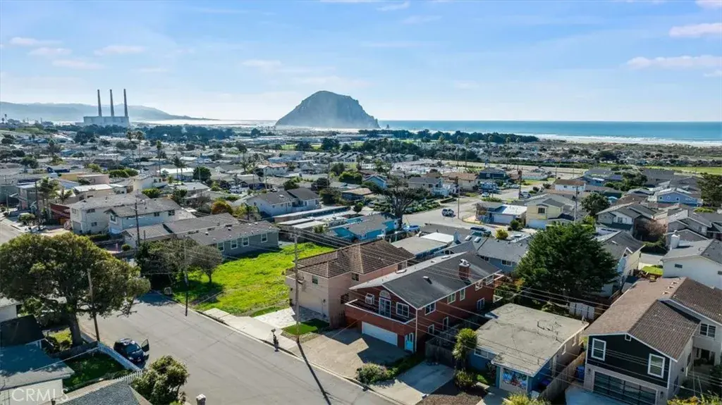 Enjoy stunning Morro Rock and whitewater ocean views from this 3-bedroom, 3-bath home, featuring one expansive main deck and two private balconies for taking in the scenery. The lower level offers an inviting entry, two bedrooms with sliders to the large rear deck and yard, and a full bath, perfect for guests or family. Upstairs, the open-concept layout includes a bright family room, kitchen, dining area, and a flexible den/office space, all extending to the spacious main balcony overlooking the fenced backyard and ocean beyond. The premier en-suite bedroom provides privacy and comfort and includes its own private balcony, with an additional full bath also on this level. Ready for your personal updates, the home presents a great opportunity. Additional features include a 2-car garage with extra storage and ample exterior parking. Located in a desirable neighborhood just minutes from beaches, trails, and the Embarcadero.