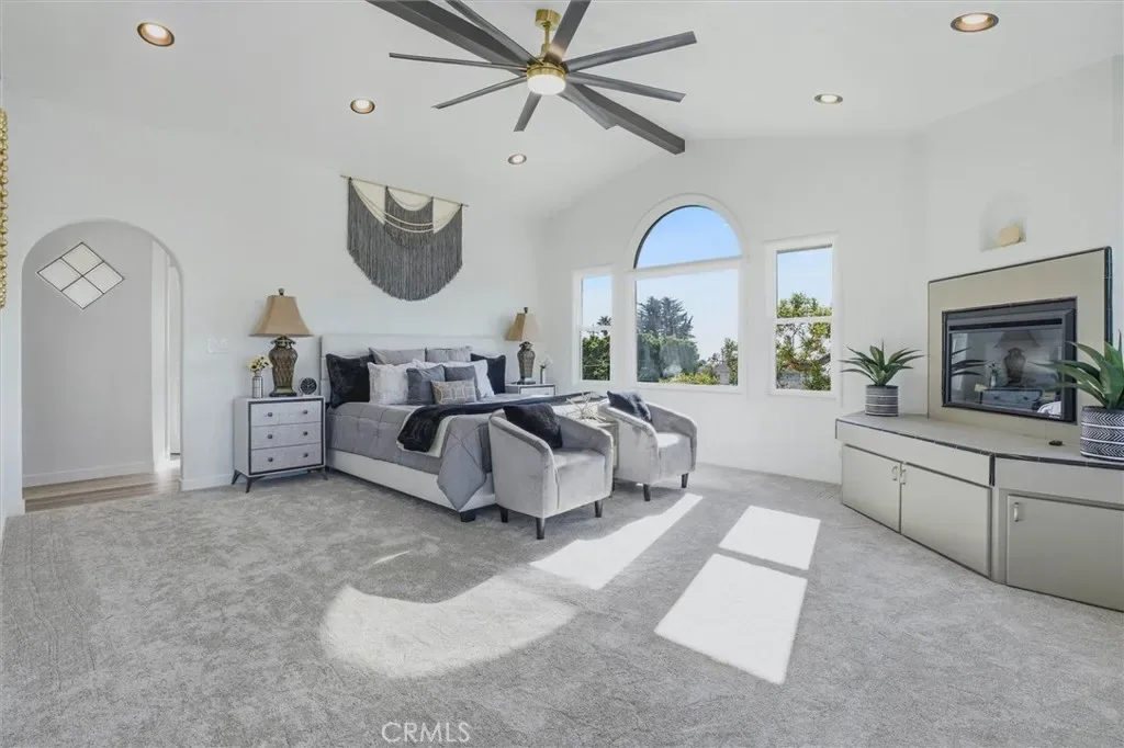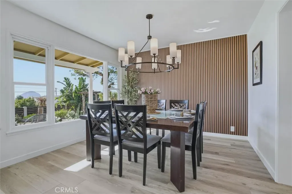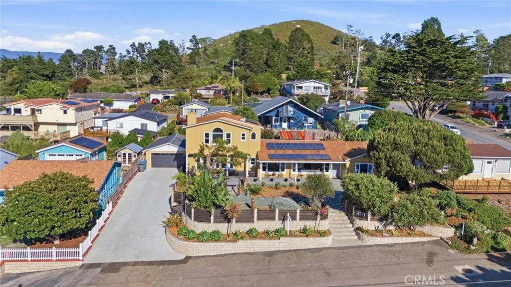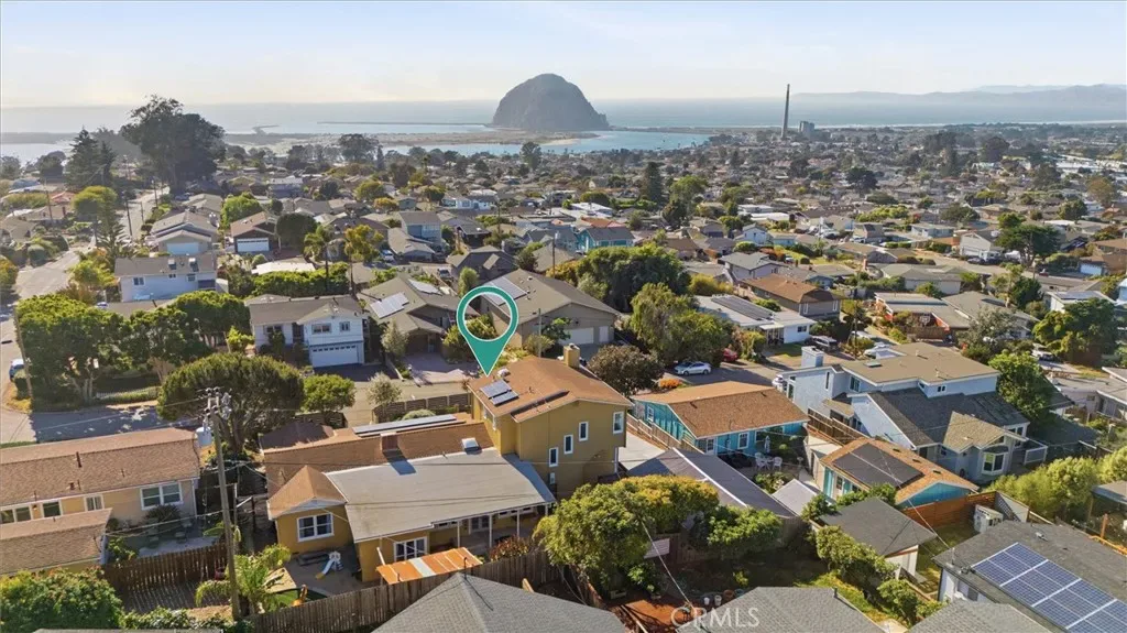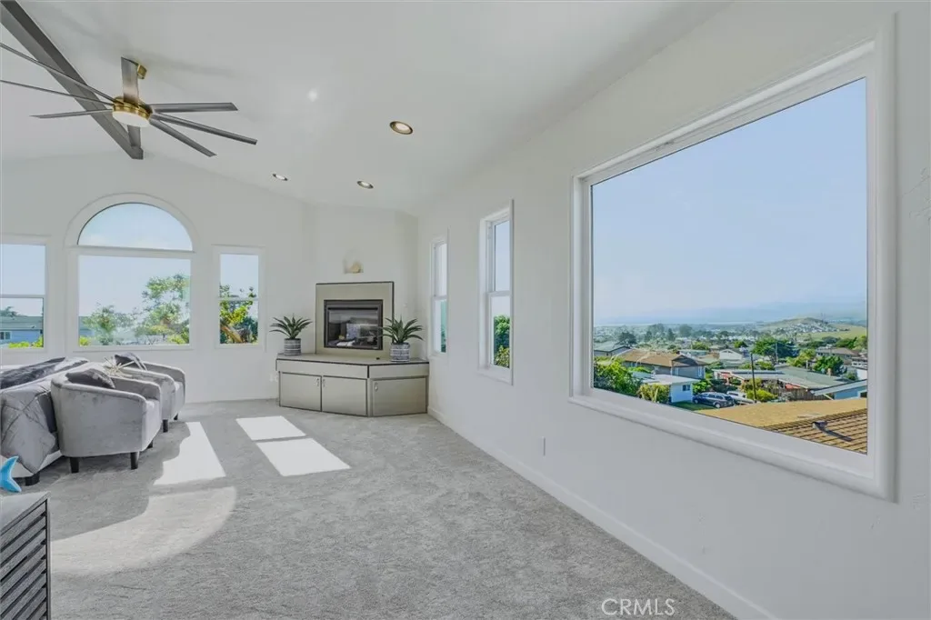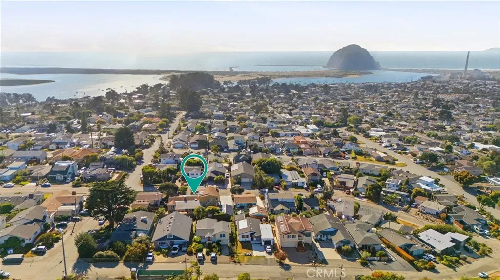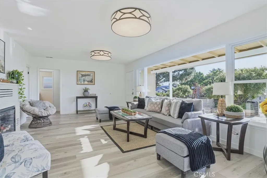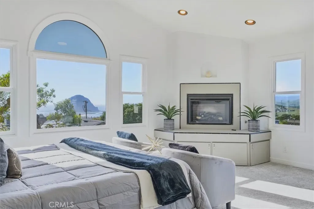 Additional spaces include a den, separate office, and living room, along with new electric fireplaces in the living room and two bedrooms. Views of Morro Rock, the ocean, and surrounding hills, add to the home’s coastal charm.