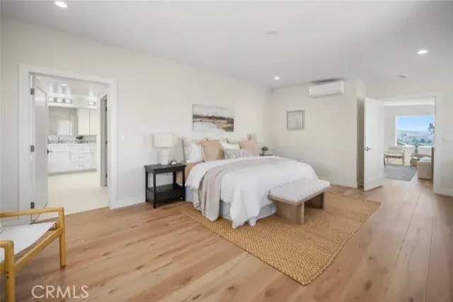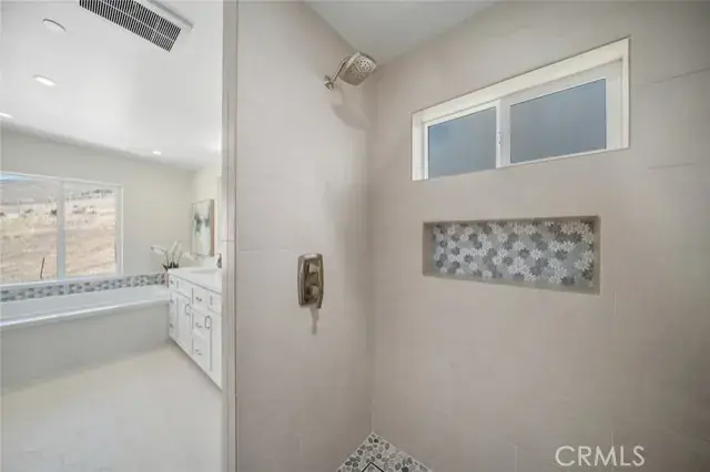 This 2,466 sq. ft. tri-level home features an open-concept top floor where the living, dining, and kitchen areas all showcase stunning ocean views. The chef’s kitchen is equipped with quartz countertops, high-end custom cabinetry, a walk-in pantry, and a large island perfect for entertaining. A spacious balcony extends the living space outdoors, offering panoramic views and a built-in gas hookup for grilling. The luxurious primary suite includes a sitting area and a spa-inspired bath with a soaking tub overlooking the hills, a walk-in rain shower, a ceiling-mounted heater fan, and a future fireplace-ready wall.