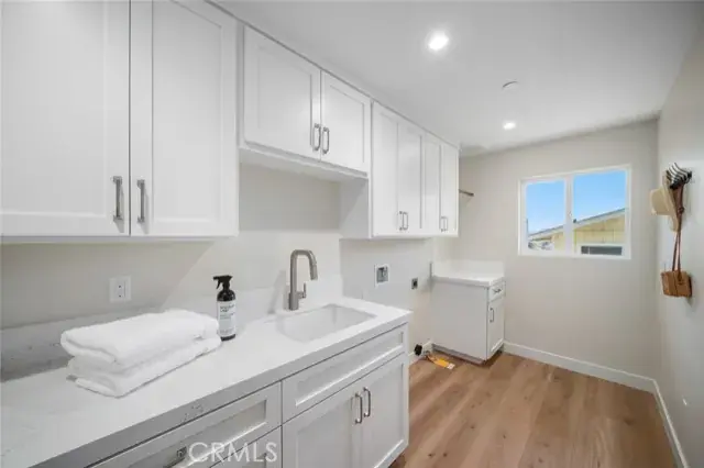 On the middle level, a guest suite with ocean views and an attached ¾ bath offers privacy and comfort, along with a large laundry room, glass door for added light, and direct access to the oversized 2-car garage wired for future EV charging.
