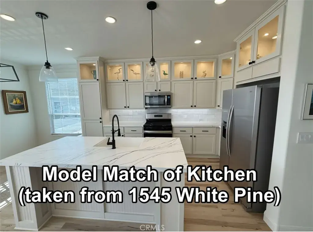 Rare opportunity to buy a 2026 Cavco manufactured home for delivery to 513 Aleppo Dr. #13 in Morro Bay within approximately 3 months of purchase. Photos are of model match recently installed at 1545 White Pine, it is identical including finishes, fixtures and colors. Also exterior photos of old mobile that is being removed for Lot visual only. It is park owned and the park will remove for and install your new home. Project to start with your first deposit. This beautifully designed 3-bedroom, 2-bath home will offer approximately 1,325 square feet of high-end, low-maintenance living in desirable 55+ Bay Pines Mobile Home Park. Designed with timeless coastal finishes and thoughtful upgrades throughout, this front-porch model combines charm, quality, and comfort. Interior features include 54″ white flat panel upper cabinets with glass display uppers, LED lighting inside and under cabinets, matte black hardware, a black Remedy Alchemy subway tile backsplash, and Corian Marble-look Ice Staturio countertops. The chef’s kitchen is anchored by a white farmhouse sink with a black spring pull out chefs faucet and deluxe stainless Whirlpool appliances including stove, microwave, dishwasher, and refrigerator. Durable Cyrus Akadia large plank laminate flooring flows throughout the home. The separate laundry room offers gas hookups and built-in cabinetry with a door to your driveway. Stylish touches are found in every corner, including black pendant lights, a white vessel chandelier with black accents in the dining area, canned lighting, and black ceiling fans in every room. All bathroom and pendant lights are seeded glass. Bathrooms include two upgraded walk-in showers with white marble look Pietra Statuario Matte tile, sleek Swedish glass shower enclosures, matte black faucets, towel bars, shower heads Black lever door handles. Each window is dressed with faux wood blinds and custom wood valances. The living room features striking 9.5-foot coffered ceilings and 8-foot doors that enhance the open feel of the home. Outside, the upgraded exterior includes cement board siding with board and batten above and lap siding in below, finished with contrasting dark body and white trim with dark doors, and an architectural black composite shingle roof. Located from Morro Bay’s downtown, beaches, hiking trails, golf courses, and renowned wine country, enjoy coastal living. Space rent $1199 and residency subject to park approval. See supplements regarding deposit schedule.