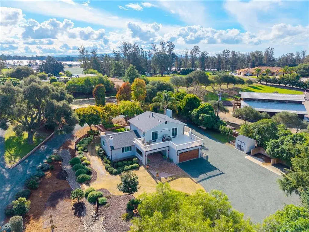 Welcome to this exceptional property where modern luxury meets country living. This beautifully remodeled 4-bedroom, 3-bathroom home sits on 2.3 acres of meticulously landscaped grounds. The 2022 whole-house renovation features items such as a new roof, all new windows and doors, plantation shutters, and elegant wainscoting throughout. Interior finishes were thoughtfully updated with high-quality low-emission materials, combining modern style with healthy, comfortable living. The main level features a bedroom and full bath, perfect for guests or multigenerational living. Two gas fireplaces complement the fully remodeled interior while preserving the home’s ranch-style character. Upstairs, the primary suite features an elegant bathroom with soaking tub and a large walk-in closet. All three bedrooms have glass slider doors that open onto a large deck, offering serene views of beautifully landscaped grounds. From the kitchen area, step outside to a private outdoor retreat where a covered patio overlooks a pristine lawn framed by mature trees. Equestrian and animal enthusiasts will appreciate the property’s well-equipped facilities including stalls, corrals, and an arena. A circular driveway accommodates trailers of any size, while multiple outbuildings provide storage or tack space. A concrete wash pad with water hookups is ideal for livestock, tractors, or other equipment. This turnkey property offers the rare combination of a completely updated home, stunning outdoor spaces, and functional animal facilities – all just moments from our Central Coast beaches. Don’t miss this opportunity to own your own private retreat!