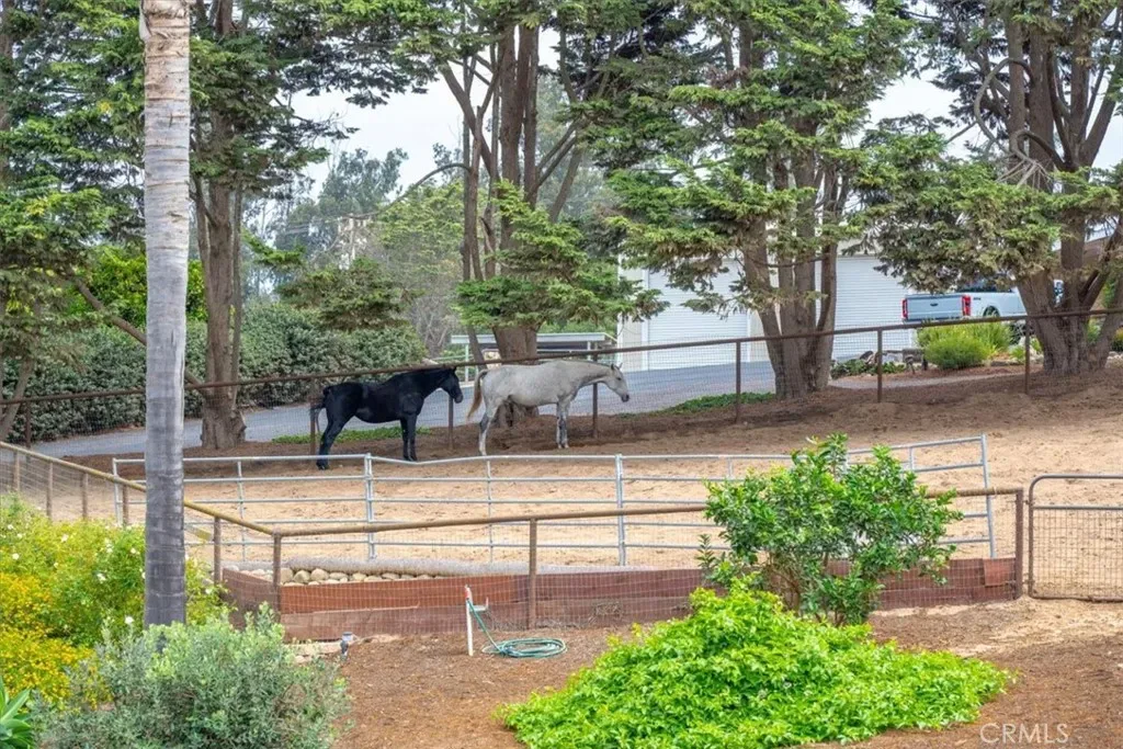 Welcome to 1093 Camino Caballo – an exceptional Central Coast property where modern comfort meets the freedom of wide-open space. Set on 2.3 beautifully landscaped acres, this fully remodeled 4-bedroom, 3-bathroom home offers flexibility for a variety of lifestyles. Whether you’re looking for room to spread out, space to entertain, or the option to keep animals, this property delivers. Following a comprehensive 2022 renovation, the home features a new roof, all-new windows and doors, plantation shutters, and refined wainscoting throughout. High-quality, low-emission materials were thoughtfully selected to create a stylish and comfortable living environment. The main level includes a bedroom and full bath, offering versatility for guests, workspace, or extended living needs. Two gas fireplaces add warmth and character to the bright, updated interior while maintaining the home’s classic ranch-style charm. Upstairs, the spacious primary suite features a beautifully appointed bathroom with a soaking tub and a generous walk-in closet. All three upstairs bedrooms open directly onto a large deck through glass sliders, creating a seamless connection to the surrounding landscape. Step outside from the kitchen to a private outdoor retreat, where a covered patio overlooks a lush lawn framed by mature trees—ideal for gatherings, recreation, or simply enjoying the peaceful setting. The grounds offer usable acreage with established improvements including stalls, corrals, and an arena, providing options for animals, hobbies, or additional outdoor use. A circular driveway accommodates larger vehicles or trailers, and multiple outbuildings provide ample storage. A concrete wash pad with water hookups adds everyday convenience. Turnkey and thoughtfully upgraded, this property offers a rare blend of modern living, open space, and versatility—just minutes from the best of the Central Coast.