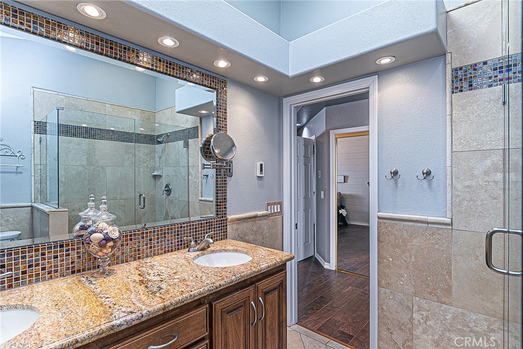 Dual sink vanity, Refreshed shower, Skylight for natural light,,Closet organizers and custom shelving