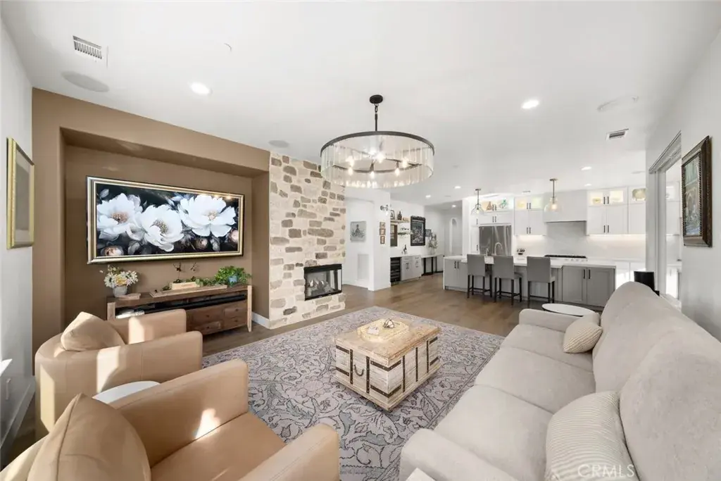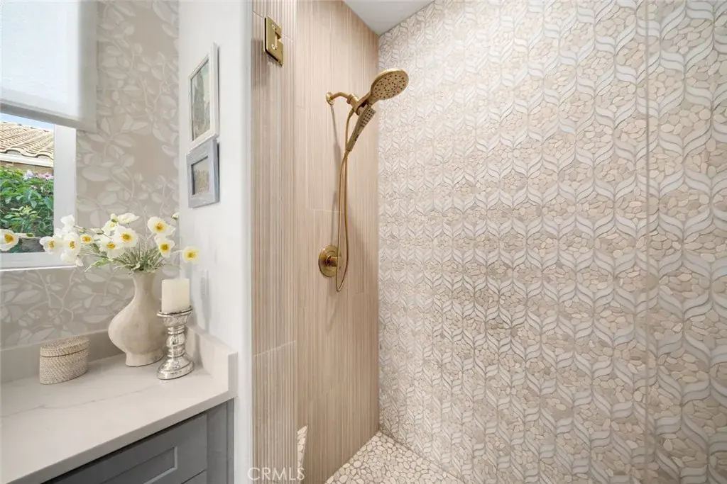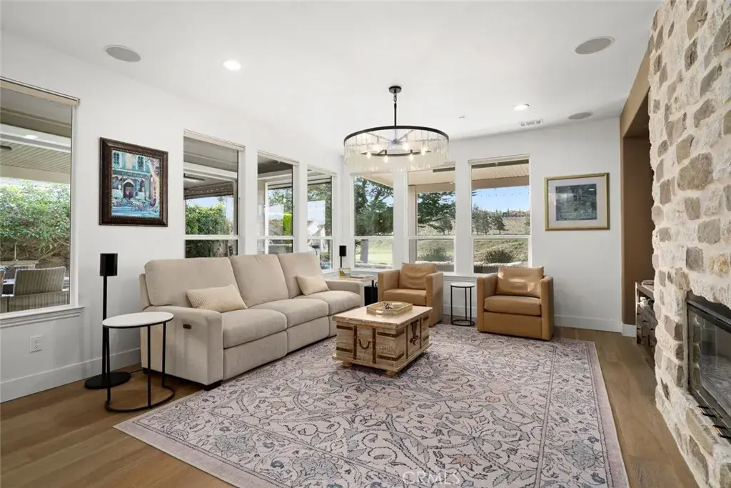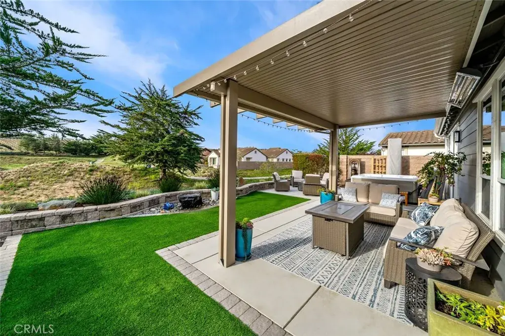 Presenting the Monterey, featuring warm, expansive, south facing views of the 9th hole of The Challenge golf course with its manicured green, serene pond and vineyard backdrop. This 3 bedroom, 2.5 bath home is unlike other Montereys – it’s been completely remodeled with over $275,000 in beautifully innovative and modern designer upgrades. You’ll love the engineered hardwood flooring, custom window treatments, shutters and shades, Pottery Barn light fixtures, new Minka ceiling fans, Serena & Lily wallpaper and brushed gold fixtures throughout. The culinary kitchen is brand new and gorgeous – modern white cabinets that reach to the ceiling with top row lit display fronts, striking quartz waterfall island with storage cabinets, farmhouse sink, quartz countertops, backsplash and range hood for a fresh, seamless look. The chef in you will appreciate the high-end stainless appliances including a GE Monogram 6-burner gas stovetop/oven, lower drawer microwave, dishwasher, Samsung refrigerator, and built-in wine bar/buffet area with wine fridge. A delightful in-kitchen dining space features banquet seating with extra storage, lush garden/fountain view and slider to the outdoor oasis. The great room sports incredible views and an impressive floor-to-ceiling stone fireplace. The backyard is magnificent – a covered patio with 2 extension pergolas, 3 ceiling heaters, 2 motorized screens, a wraparound retaining wall, beautiful low-maintenance landscaping, artificial turf, multiple seating areas, a built-in stone barbecue island with high top seating, fountains, built-in gas fire pit and a 6-person hot tub. Back inside, the owner’s retreat features a large, tastefully designed bedroom with patio/hot tub access and a luxurious en-suite bath with dual sinks, quartz countertop, custom mirrors/lighting, wallpaper, walk-in tile shower with seamless glass enclosure and customized walk-in closet. An equally incredible guest wing includes a bright bedroom, fully-remodeled bath next door, laundry w/innovative half bath addition and a den/flex room with Murphy bed/storage. Add a 2-car garage, plenty of coastal curb appeal and fabulous Trilogy Monarch Dunes resort-style amenities. This home shows like a model and will not last long – call today!