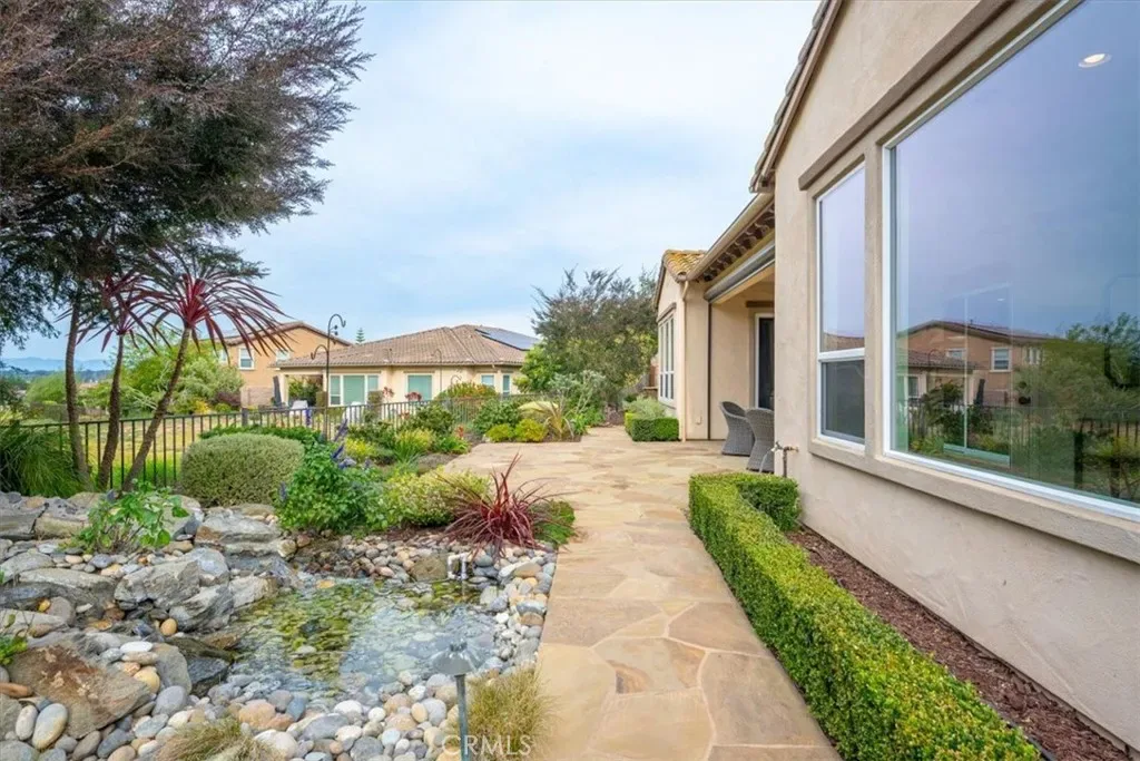 Welcome to this stunning Carmel model home, gracefully set within the highly sought-after Trilogy Monarch Dunes community. This beautifully designed single-level residence captures sweeping golf course and ocean views, offering a peaceful backdrop to everyday living and unforgettable sunsets right from your own backyard. Thoughtfully crafted with comfort and elegance in mind, the home features 3 spacious bedrooms and 2.5 bathrooms, providing plenty of room for both family and guests. Step inside to an expansive open floor plan where soaring ceilings and abundant natural light create a warm, airy atmosphere that instantly feels like home. At the heart of the space, the gourmet kitchen is a true showpiece — complete with an oversized island, quartz countertops, premium JennAir stainless steel appliances, and a generous walk-in pantry — perfect for gathering, entertaining, and everyday living alike. Beautiful upgrades throughout include fresh interior paint, rich hardwood floors, and custom built-in cabinetry that add both style and function. A smart space design enhances organization and convenience, making daily life effortless. Seamlessly blending indoor and outdoor living, the rolling wall with a screen door opens to a private backyard retreat. Here you’ll find a tranquil waterfall feature, cozy fire pit, and fully equipped outdoor kitchen — ideal for hosting friends or simply relaxing under the Central Coast sky. The oversized lot is thoughtfully landscaped with low-maintenance design and artificial turf for easy care year-round. Enjoy the serenity and resort-style lifestyle that Trilogy is known for, with nearby golf courses, wineries, scenic trails, and countless opportunities to explore the beauty of California’s Central Coast.