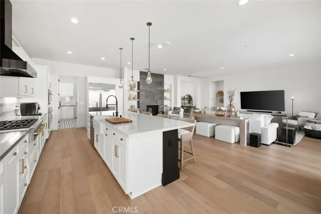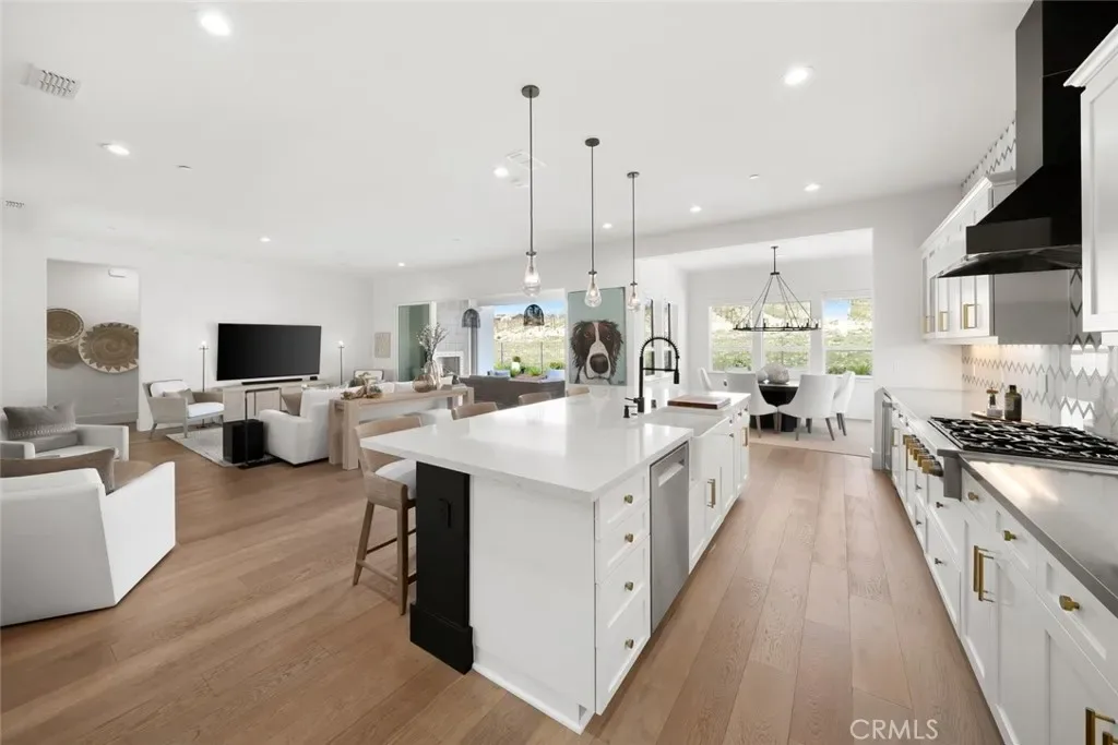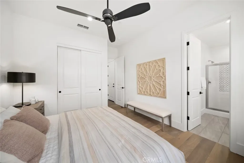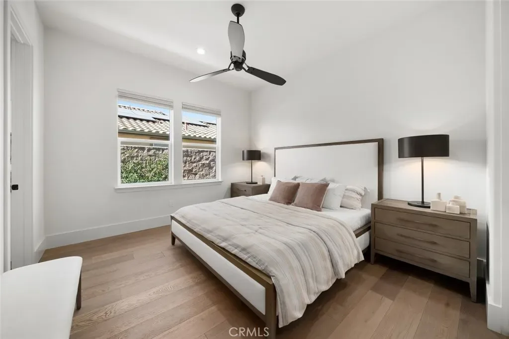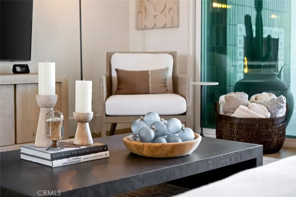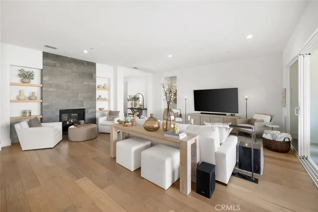 Spanning approximately 2,498± square feet, this thoughtfully designed residence offers two bedrooms, two baths, and a private office, with a layout that balances comfort and refined elegance. Beautiful white oak flooring flows throughout the main living spaces, while a striking double-sided fireplace creates a warm architectural focal point—anchoring the main living area on one side and a flexible den or office on the other. At the heart of the home, the spacious kitchen features a large center island and an adjacent dining area, ideal for both everyday living and effortless entertaining. Expansive doors open to a covered patio complete with its own fireplace, perfectly framing serene vineyard views and creating a seamless indoor-outdoor experience.