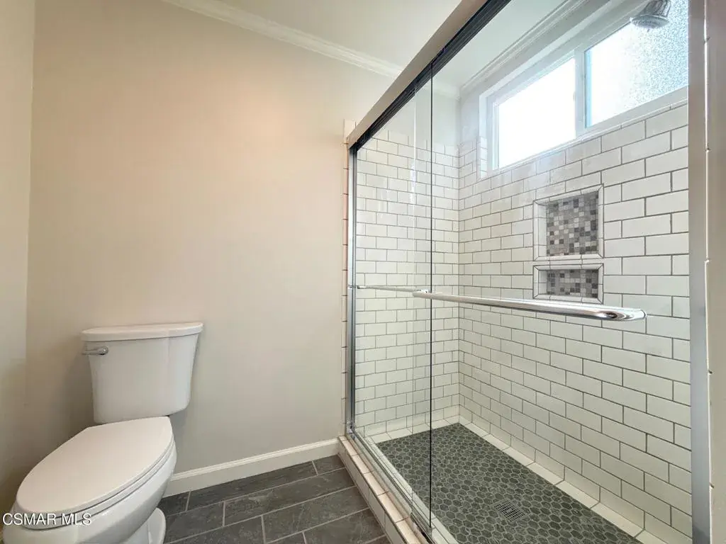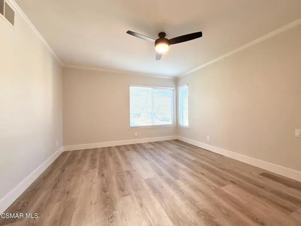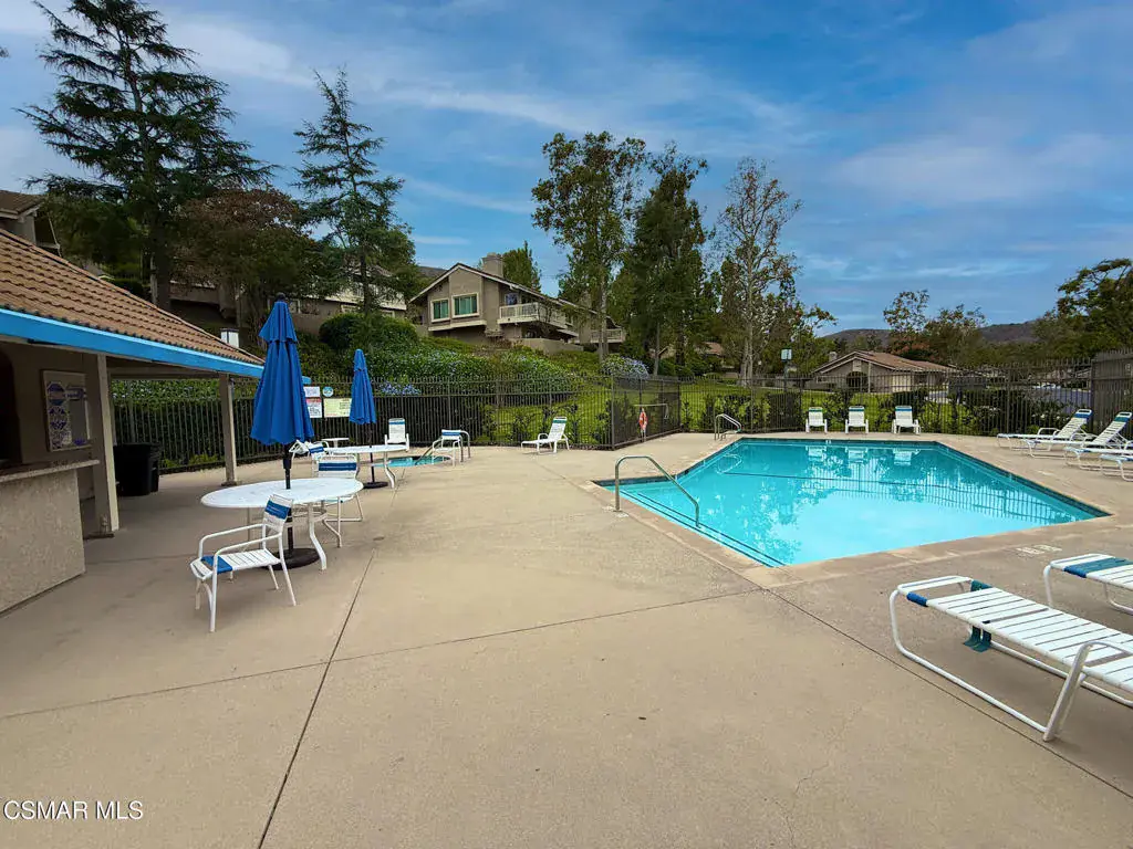 An amazing opportunity to own this completely remodeled Oak Park gem nestled in the serene Country Vista community. Step inside through the oversized attached two-car garage and ascend the grand staircase where all living spaces rest on one main level. The double-door primary suite features a beautifully remodeled bathroom with a large walk-in closet, offering both style and functionality. Down the hall, a spacious guest bedroom opens directly to the private back patio and is served by a full, tastefully updated guest bathroom. A generous hallway linen closet adds extra convenience. The inviting great room is framed by exposed wood-beam accents and centered around a striking floor-to-ceiling brick and wood fireplace, creating a warm and timeless atmosphere. The remodeled kitchen showcases shaker-style stacked cabinets, classic subway tile backsplash, and ample storage and counter space. The charming breakfast nook includes additional cabinetry and countertop area, perfect for extra prep space or a stylish coffee bar. Expansive sliding glass doors lead to a private balcony overlooking the trees and mountains, bringing in natural light and a true sense of tranquility. Throughout the home you’ll find newer vinyl windows and sliders, wood-like flooring, recessed lighting, and numerous thoughtful upgrades that make this home truly move-in ready. Enjoy the community pool, spa, and BBQ area, as well as nearby parks and scenic hiking trails. Tucked away among the trees and natural surroundings, this property perfectly blends modern comfort with peaceful, hillside living – a truly serene place to call home