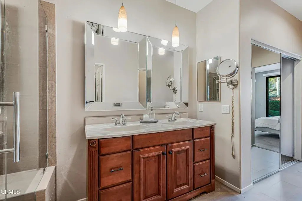 Welcome to this beautifully updated two-story townhome in the desirable Capri community of Oak Park. Perfectly positioned for privacy and comfort, this residence features two spacious primary suites, plus a peaceful backyard retreat with a water fountain and stunning mountain views.Step inside to a bright and airy double-height entryway that sets the tone for the home’s open, modern feel. The kitchen is thoughtfully designed with a bay-window dining nook, breakfast bar, and ample cabinet space, along with quality appliances including a gas range/oven, built-in microwave, and dishwasher.The adjacent living room features an accent wall, a cozy fireplace, and sliding glass doors leading to the private patio, a perfect spot to unwind beside the fountain or enjoy dining al fresco.The main-level primary suite offers comfort and convenience with direct patio access, dual closets, and an ensuite bathroom featuring dual sinks and a walk-in shower. Upstairs, the second primary suite serves as a quiet retreat with an oversized window, wall-to-wall carpeting, and a private ensuite bath with a tub/shower combination.Residents of Capri enjoy access to resort-style amenities, including a swimming pool, clubhouse, and tennis courts, all within a neighborhood surrounded by beautiful hiking trails and parks. Zoned for top-rated, award-winning schools, this townhome offers the perfect blend of comfort, convenience, and natural beauty.