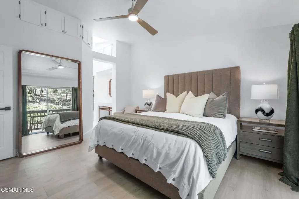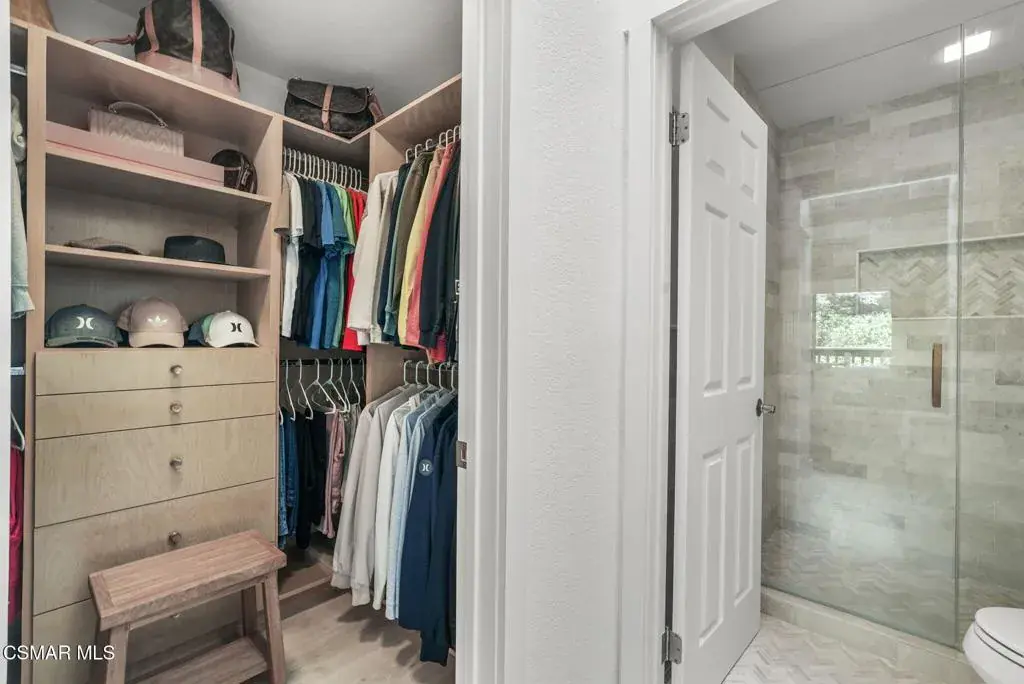 Elegantly updated in 2023, this timeless home features the following: Wide plank performance grade flooring throughout (AC6 durability rated for high traffic areas, kids, and pets!), updated dream kitchen which includes soft close cabinets/drawers, quartz countertops, chef worthy cafe line appliances with accent champagne bronze hardware finishes, oak floating shelves, polished ceramic backsplash tile, Moen sensor touch less faucet and deep under mounted kitchen sink. Directly off this designer kitchen boasts a lovely open concept dining area, living room, charming fireplace, elaborate high ceilings, recess lighting throughout, and a gorgeous, updated half bath off the main living room for your guests. Arrive at the second floor where you can find two bedrooms each with their own en suite bathrooms and custom walk-in closets. To your right walk into a vibrant primary suite equipped with large sliding glass doors that open to a private patio and nature. Enjoy a cup of coffee or a nighttime beverage while immersing yourself In all nature has to offer. Step back inside and enjoy on suite bathroom amenities featuring modern sleek vanity, champagne bronze fixtures, honed herringbone marble floors, custom shower glass doors, and a custom walk-in floor to ceiling honed marble shower that makes your private oasis feel like an exclusive luxury spa. Encompass yourself in floor to ceiling marble and enjoy the delta vero rainfall shower experience. Step outside your personal spa and enter into your custom walk-in closet featuring soft close drawers, shoe storage, bag storage, and ample clothing space. To the left of the second story landing boasts a stunning second bedroom which can be transformed for guests, office space, or a nursery. En suite second bedroom bath includes modern vanity, marble flooring, deep soaker tub, ceramic tile, delta Vero shower fixtures, and custom shower glass doors. Step outside this spa like experience and enter the second walk in closet of the house featuring soft close drawers, shoe shelving, and ample clothing space. Additional highlights include a one-car garage, smart home features and access to a community gym/exercise room for your daily workouts. For outdoor enthusiasts, enjoy the nearby hiking and biking trails, perfect for taking in the surrounding natural beauty.Centrally located between Westlake Village, Agoura, Calabasas and highly sought after school districts!