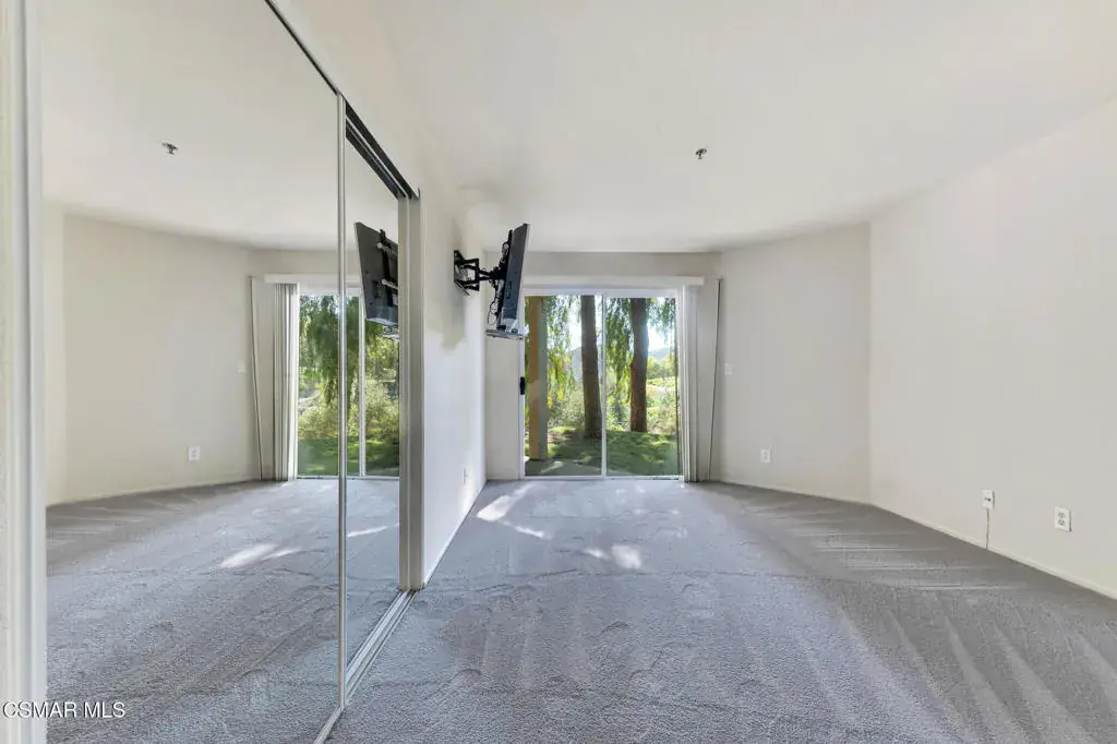 Tucked away in one of the most private locations within the community, this charming first-level end unit offers the perfect blend of tranquility and convenience. Situated at the very back of the complex, it boasts panoramic mountain views and exceptional privacy.The light-filled interior features fresh paint, new LVP flooring, recessed lighting, and an open, airy layout. The living room and both bedrooms open to private patios through sliding glass doors, creating seamless indoor-outdoor living spaces. The primary closet is fitted with California Closets organizers.Two dedicated covered parking spaces are included for added convenience. Residents enjoy an array of HOA amenities, including a sparkling pool, relaxing spa, tennis courts, fitness center, racquetball and basketball courts, volleyball area, and BBQ picnic spaces.Located in the highly desirable community of Oak Park, this home offers access to top-ranked schools, nearby shopping and dining, and miles of scenic hiking and biking trails.