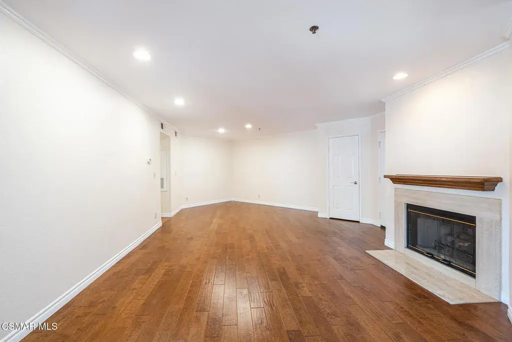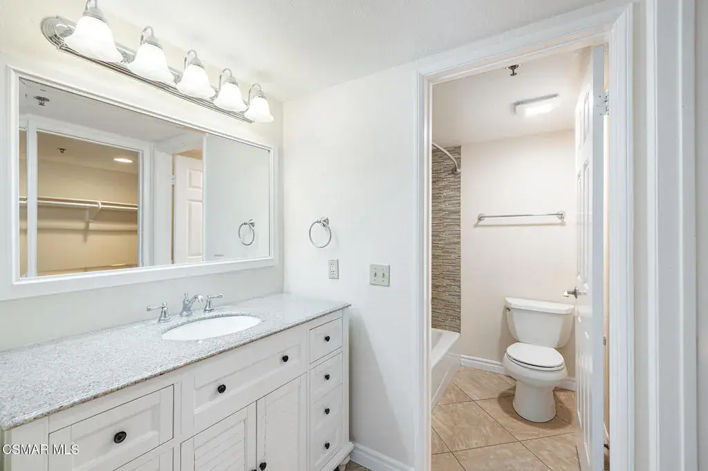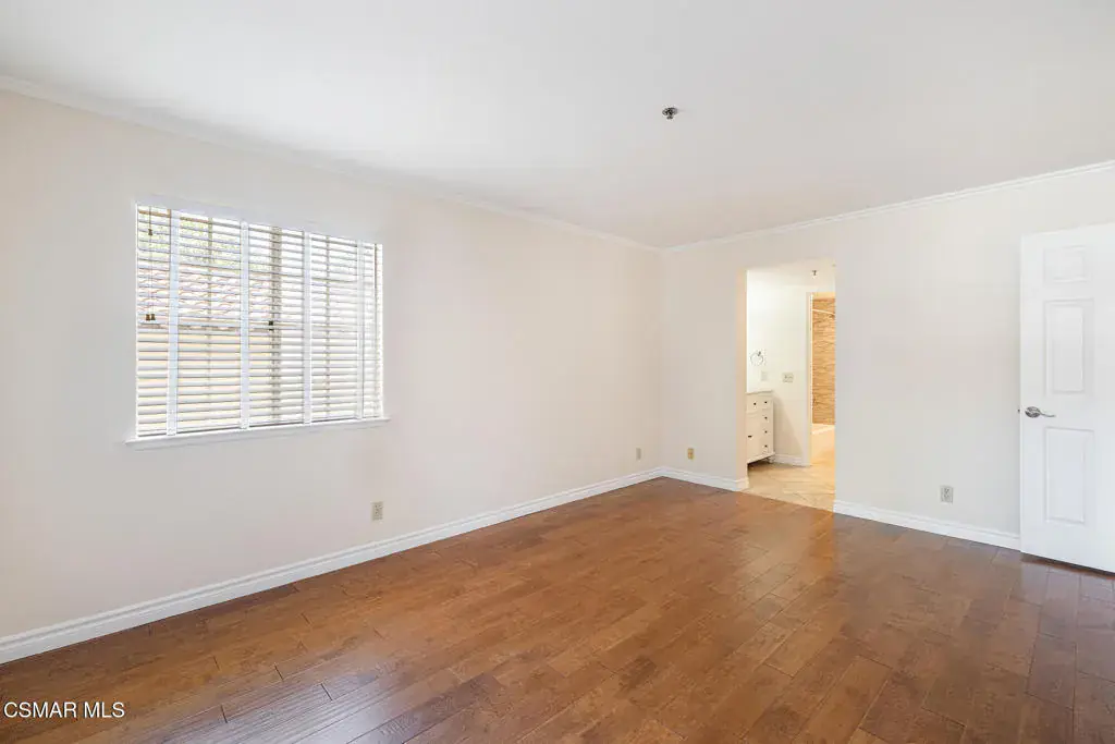 Nestled in the desirable Shadow Ridge community of Oak Park, this meticulously maintained ground-level home is located in the highly regarded Oak Park School District. Freshly painted and featuring warm, neutral tones throughout, this 2-bedroom, 2-bathroom unit boasts beautiful wood floors and an open-concept living and dining area, complete with a cozy fireplace and covered patio. The kitchen offers stainless steel appliances, granite countertops, and generous storage space. The spacious secondary bedroom features a sliding door that leads to a shared patio and just across the hall, you’ll find a beautifully updated bathroom with a granite vanity and a tub/shower combo. The primary suite is a tranquil retreat, complete with a large walk-in closet and an updated en-suite bathroom featuring granite counters, a tub/shower combo, and a private patio. The unit also includes a laundry/utility room with space for a full-size washer and dryer. Shadow Ridge offers resort-style living, featuring two pools, tennis and racquetball courts, a volleyball court, gym, sauna, and clubhouse. HOA fees cover cable with HBO and Cinemax, high-speed internet, and fire and earthquake insurance. With its prime location, this home provides easy access to shopping, dining, top-rated schools, parks, and scenic hiking and biking trails.
