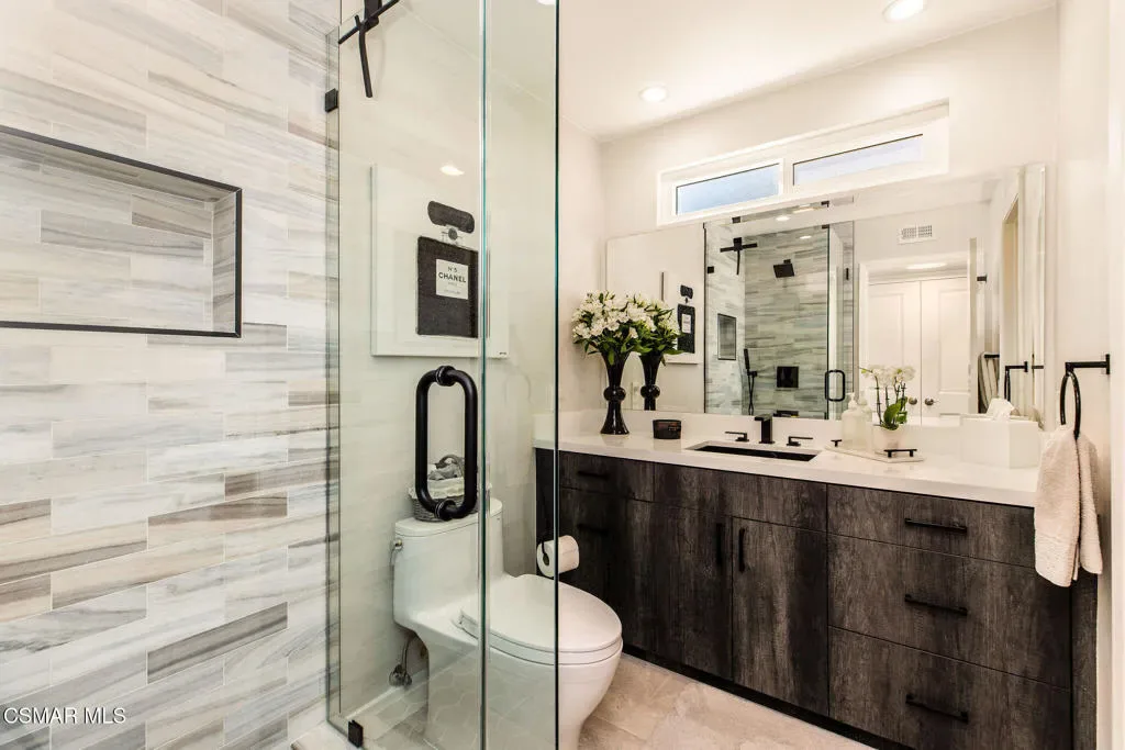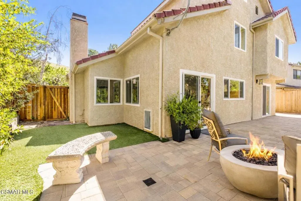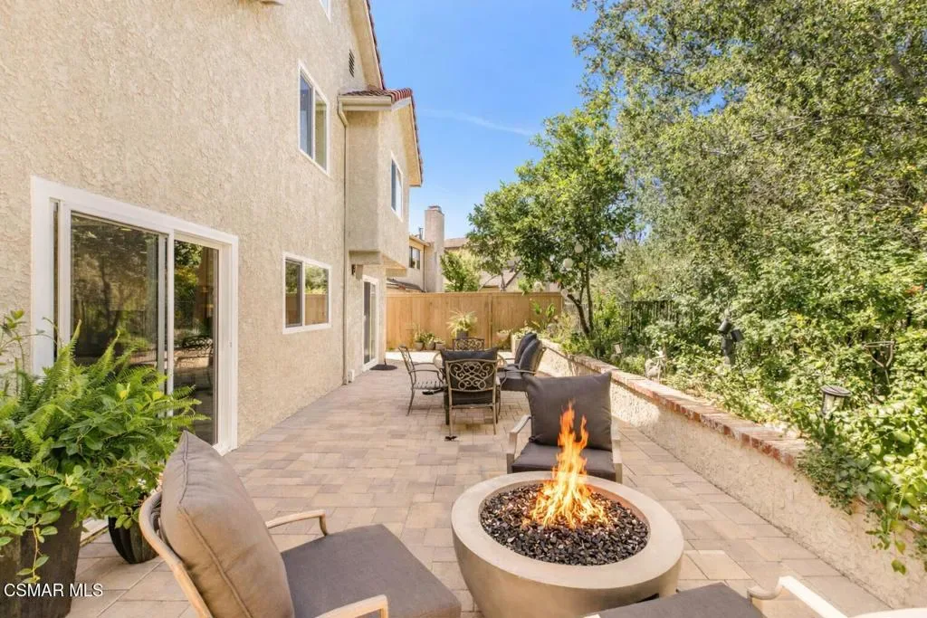 This gorgeous detached single home has been lovingly maintained and upgraded by its original owners who spent over $200,000 in recent updates! The sparkling kitchen features a 2021 remodel which includes upgraded appliances, gorgeous cabinetry, updated lighting and shining granite countertops. The breakfast bar seamlessly connects the kitchen to the dining room and contributes to the openness of the floor plan. The ceilings are high throughout and the home has a very spacious feel to it. The dining room opens to the living room which features a fabulous fireplace and front picture window. The newer front door is a statement all it’s own and lends to the clean lofty vibe of the entire interior. The primary bedroom and updated attached bath are conveniently located on the first floor. The first floor hall features beautiful built in cabinetry, a laundry area and attached two car garage. The second level features two bedrooms, and two more updated bathrooms, one bedroom is ensuite. There is even an additional bedroom on the top (third) floor! This energy efficient house is ready for you to move right in – newer vinyl windows, a newer gas furnace and a/c unit (2023) as well as a new garage door (2024), newly insulated attic and insulated first floor walls are all designed and installed to keep energy costs down! The carpeting on the stairs and in the bedrooms is from 2025. This stunner is at the end (second to last house) of a flat, quiet cul de sac street. No houses behind it and plenty of cul de sac parking for your guests! The two sets of (newer) double door sliders open to your own private backyard oasis featuring a grassy area as well as a fire pit and a large patio area for entertaining and backyard dining. With no neighbors behind you, nature and all it’s splendor are right outside your backdoor! The Country Meadows community includes a lovely pool and spa. The house is approximately one block to the closest (of many) hiking trails. Deerhill Park is right down the street and includes two playgrounds, basketball courts and 10 pickleball courts, baseball and soccer field. There is also a nearby dog park, splash pad and community center. Oak Park schools are known for their high ranking – 10/10 on Great Schools. 15 miles to Malibu Beaches. This home, location and community can’t be beat!