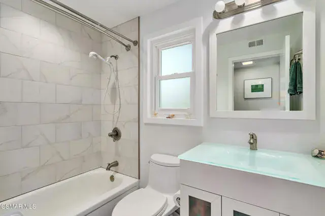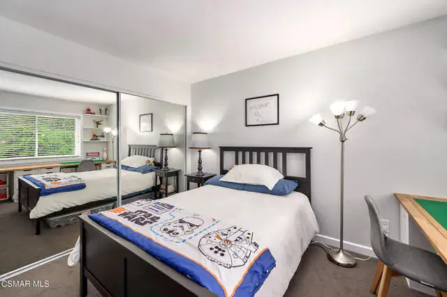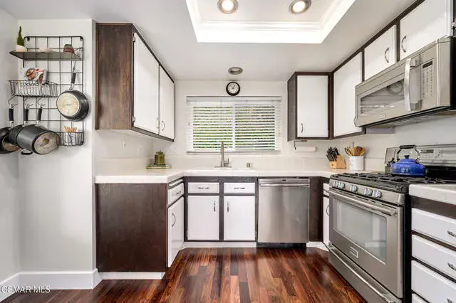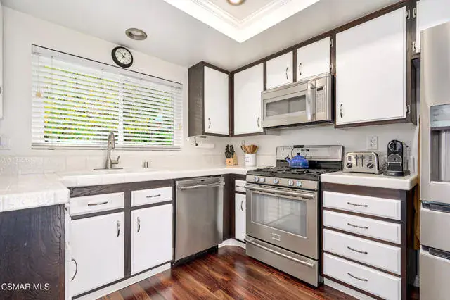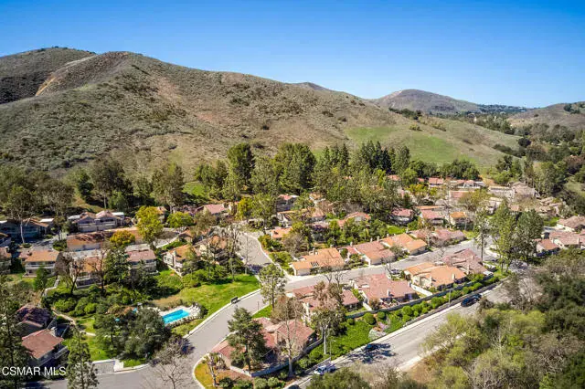 Exquisite Oak Park Home with Modern Upgrades and Private Outdoor LivingWelcome to 614 Calle Mirador, a beautifully updated single-family residence nestled in a quiet cul-de-sac in the highly desirable Country Vistas III community of Oak Park. Offering 4 bedrooms, 2.5 bathrooms, and 1,672 square feet of thoughtfully designed living space, this home combines modern comfort with timeless features.Step inside to discover a bright, open interior with high vaulted ceilings, upgraded windows, and exotic Palisander hardwood floors throughout the main living areas. The open-concept living and dining spaces offer a private overlook of trees and mountains–perfect for relaxing evenings or entertaining guests. The modern Dynasty electric fireplace creates a warm focal point in the living room, while built-in hidden wiring makes the space home-theater ready.The primary bedroom suite on the main level offers a peaceful retreat with custom closet storage and an expanded en-suite bath featuring upgraded vanities and glass sinks. A versatile secondary bedroom/office on the entry level includes a built-in desk, custom mirrored barn door, and a convenient half bath.Downstairs, two additional bedrooms feature custom closet storage, and the full bathroom is enhanced with a glass vanity and heated tile floors–a touch of luxury you’ll appreciate year-round.Enjoy California outdoor living on the upper and lower flagstone patios, which provide private, serene spaces surrounded by lush landscaping. Recent updates include a new tile roof (2025) for long-term peace of mind.This tranquil, well-maintained home offers easy access to distinguished Oak Park schools, scenic hiking and biking trails, and is just a 25-minute drive to Malibu’s beaches.Don’t miss this opportunity to own an exceptional Oak Park home that blends modern updates, versatile living spaces, and private outdoor retreats. Schedule your tour today!