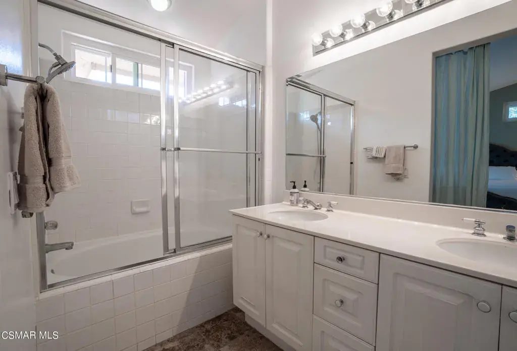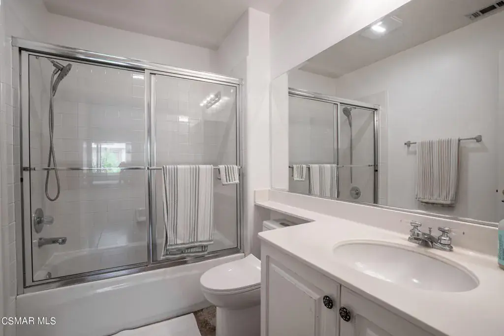 FURNISHED Capri End-Unit 3+3, Spacious and Open Floorplan w/Lush Private Patio. Large Living Area w/Fireplace and Vaulted Ceilings. Large Formal Dining, Cook’s Kitchen w/Newer Appliances & Cookware. One Large Bedroom Downstairs w/Full Bathroom Downstairs too. New Dual-Pane windows help control temperature and keep inside Serene. Big Master Upstairs w/Private Bath, Dual Vanity and Soaker Tub w/Shower Stall plus Third Bedroom Up and Hall Bathroom. Newer Paint, Hardwood Floors, many Recent Upgrades, Piano, Direct Access 2-car Garage, Washer & Dryer, AC, steps to Guest Parking, Neighborhood Pools, Spas, Tennis Courts and Green Belt/Park in Oak Park Unified School District right across from Red Oak Elementary, close to Shopping, Open Space and 101 Fwy. See it Today! FULLY FURNISHED Month-to-Month OK