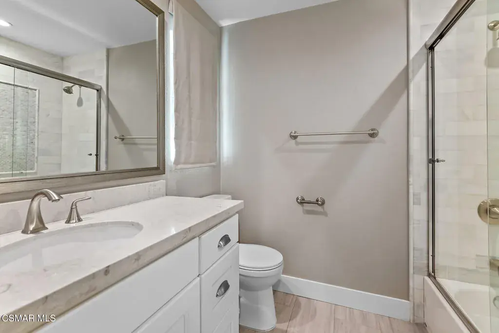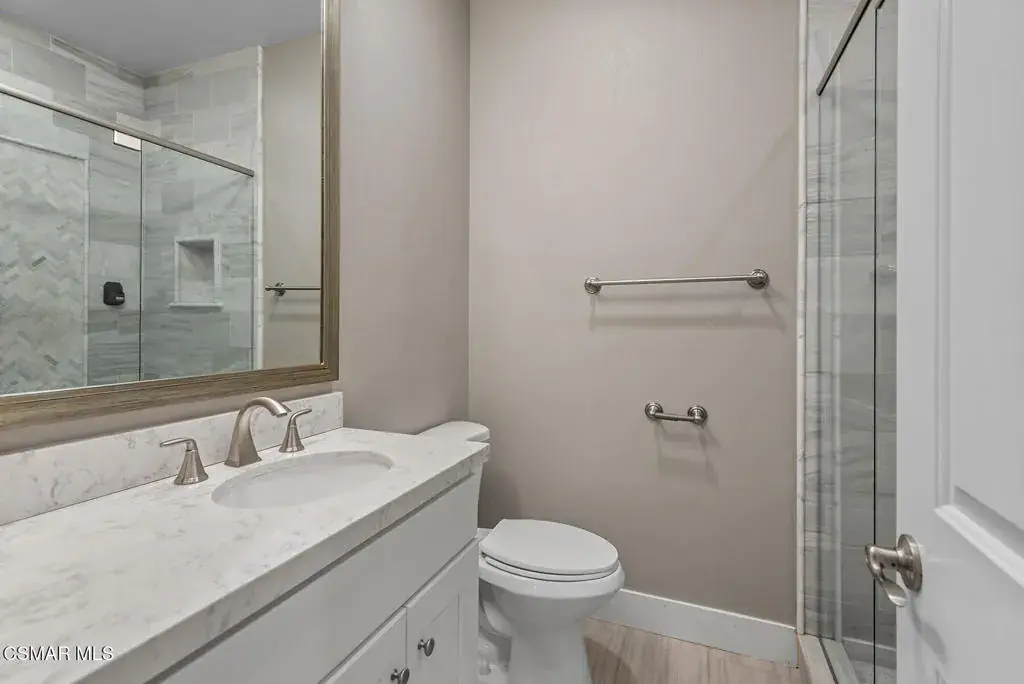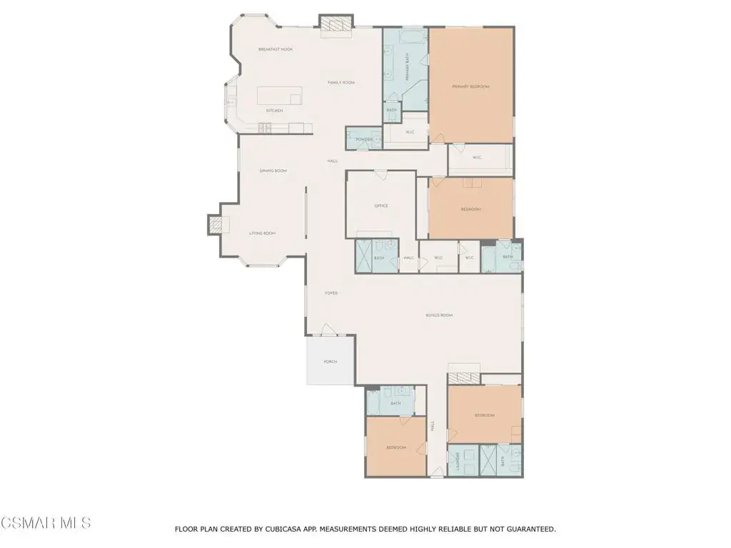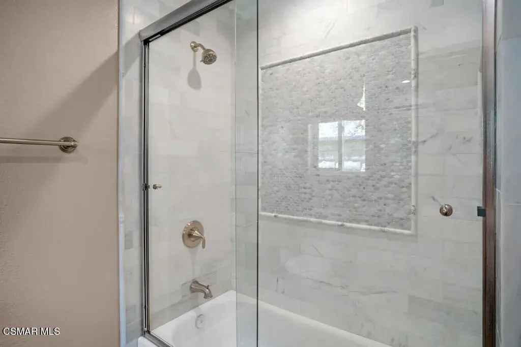 Reimagined for connection, comfort, and the ease of single-story living, this expansive Oak Park residence offers a rare blend of space, privacy, and resort-style atmosphere within a quiet cul-de-sac setting. Designed for those who value flexibility and flow, the approximately 4,300-square-foot layout lives larger than expected and presents a unique opportunity for multigenerational living, extended guests, or a private work-from-home retreat.A welcoming foyer opens beneath soaring vaulted ceilings — the home’s unforgettable first impression — where natural light and generous proportions create an airy sense of scale. Formal living and dining spaces feel both open and inviting, ideal for gatherings large or small, while a substantial game and bonus room with 7-speaker surround sound provides a dedicated space for movie nights, recreation, or relaxed entertaining.At the heart of the home, the chef’s kitchen and great room connect seamlessly to the informal dining area and backyard beyond, encouraging effortless indoor-outdoor living. Walls of glass frame views of mature pines, oaks, and sunset-tinted mountain skies, while multiple access points lead to outdoor entertaining areas and a well-appointed BBQ center.The serene primary suite offers a peaceful escape with dual closets and a spa-inspired bath featuring a freestanding slipper tub, expansive vanity, oversized shower, and private water closet. Three secondary bedrooms each enjoy remodeled ensuite baths, and a separate office with full bath and large closet creates a flexible wing ideal for extended family or guests.Surrounded by citrus trees and lush landscaping, the private backyard delivers a true social retreat — complete with a remodeled pool and spa, tranquil waterfalls, circular fire-pit lounge, and spaces designed for year-round California evenings.Additional highlights include an owned Panasonic solar system with two Tesla Powerwalls, EV charger, refreshed landscaping with updated irrigation and drainage, and a coveted location within the Oak Park school district near parks, trails, and local shopping. Rare in both size and layout, this single-story home offers the scale of a custom estate with the warmth and lifestyle of Oak Park living.