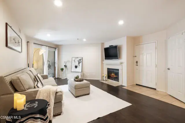 Gorgeous Oak Park end unit, one level, first floor condo, 2 BR + 2 BA + 2 patios, beautiful upgrades throughout, feel the cool coastal breeze and the warm SoCal sun from your private patio oasis, living room with cozy fireplace, remodeled kitchen with granite counters, newer cabinets, travertine tile flooring, and stainless-steel appliances, spacious main suite with walk-in closet, two tastefully updated bathrooms, large bedrooms with slider doors leading to patio, enclosed laundry area, new water heater, 2 covered carports (no garage), 2 community pools/spas, tennis courts, gym/recreational center, and sport courts for racquetball, volleyball, basketball, nearby award-winning Medea Creek middle school and Oak Park High. Convenient location with shopping plazas, parks, and hiking/biking trails in proximity, easy commute to LA Downtown, Hollywood, West LA, Malibu. Enjoy a lifestyle with peace, serenity and excellence.