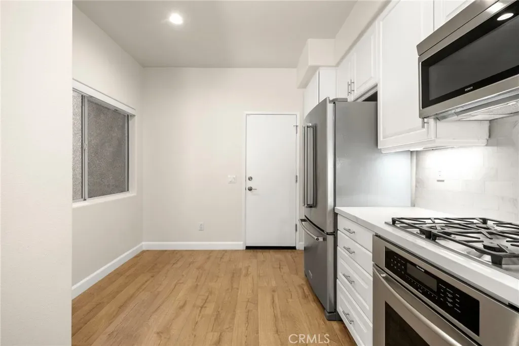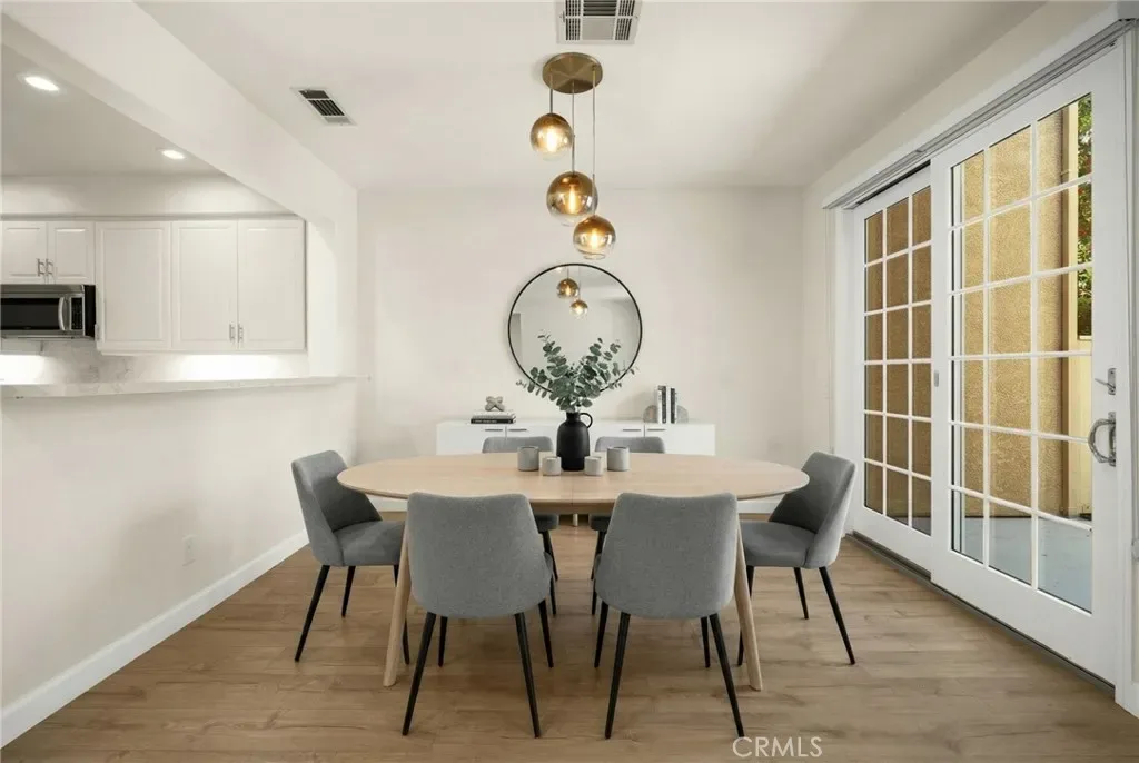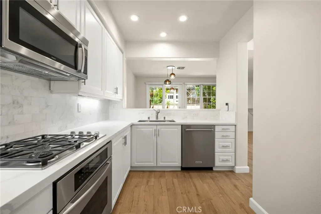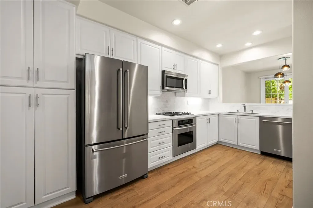 This thoughtfully designed residence features all three bedrooms located upstairs. The redesigned chef’s Kitchen is the heart of the home, featuring high-end stainless-steel appliances, designer backsplash, and a versatile bar counter. The Kitchen opens seamlessly to the Family Room featuring a cozy Fireplace and sliding glass doors that lead to the Backyard—creating a wonderful indoor/outdoor living experience.