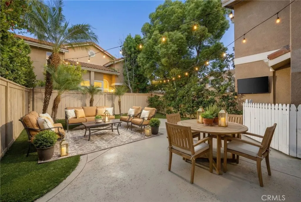 The Backyard is one of the largest in the Capri community—a rare find for a townhouse—and offers a spacious patio perfect for relaxing or entertaining. Surrounded by tall, mature trees and hedges, the yard feels peaceful and secluded while providing plenty of space to enjoy outdoor living. Unique to this unit, there is also a long grass run directly accessible via a gate at the rear of the Backyard.
