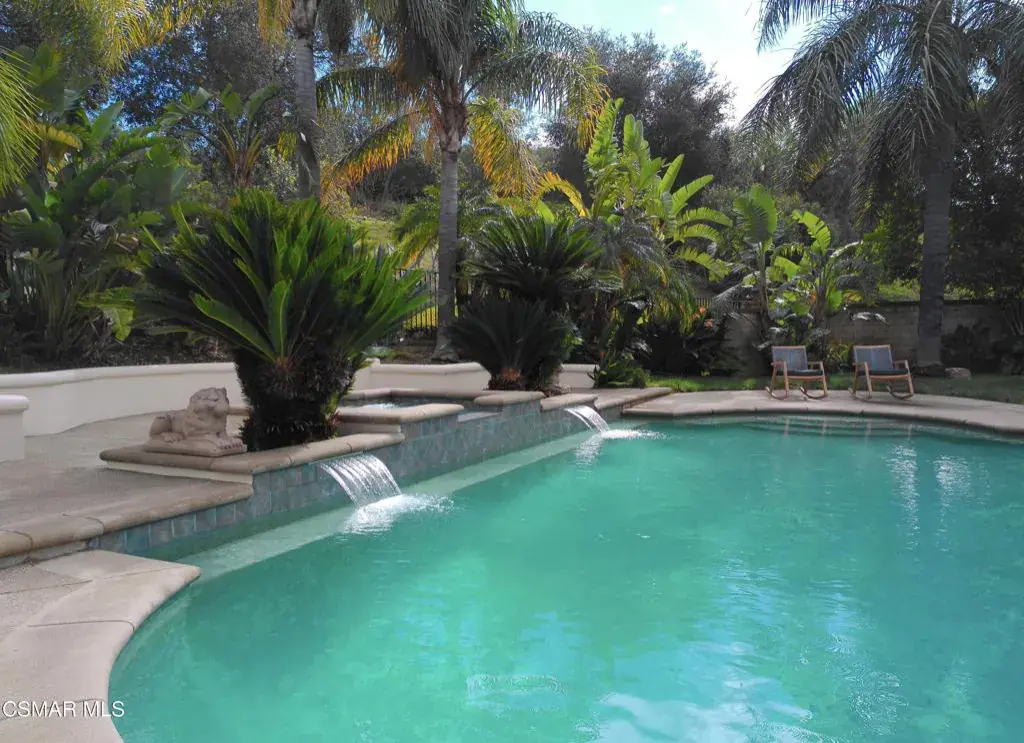 Entertainer’s Dream in the Prestigious Regency Hills a Prime Oak Park Location.Welcome to this wonderful, private retreat designed for effortless indoor-outdoor living. Situated in a serene setting surrounded by nature, this home is truly an entertainer’s dream.Enjoy a spacious backyard oasis featuring a large pool, expansive grassy play yard, built-in barbecue center, and an oversized patio perfect for gatherings, celebrations, or relaxing under the stars.Inside, the home is clean, light, and bright with an open, inviting floor plan. Offering six bedrooms — or five bedrooms plus a dedicated office upstairs– and 4.5 baths, the layout is both flexible and functional. Upstairs features two primary suites, for generational living or a multi-purpose room to fit your needs. Downstairs includes one bedroom and one full bath, perfect for visitors or a second office.Additional highlights include a three-car garage and access to the award-winning Oak Park schools in Oak Park.A rare combination of privacy, space and location. Lot size 11,000 sq ft all flat usable. — this is California living at its best.Pictures are shown Both Virtually Staged with Furniture and Without.