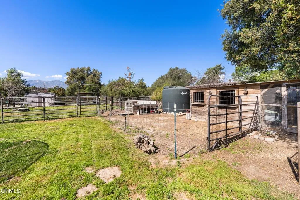 If you’ve dreamed of owning your own mini farm, this charming single-level home in Skyline Estates is the perfect fit. This 3-bedroom, 2-bath ranch-style home is full of character and offers beautiful mountain views, a very desirable neighborhood, outdoor fireplace as well as an indoor fireplace located in a cozy family room. The huge back yard is flat and usable with the total lot size being .60 acre lot.Originally built in 1958, the home is ideal for someone looking to enjoy the lifestyle of owning property that is well suited for gardening and caring for animals that includes a horse corral with grazing area, round pen, tack and feed shed, goat pen, chicken coop, 40+ fruit trees, and raised planter beds in fenced garden area with large cast iron sinks for washing veggies.Wide side yard access provides easy entry to the backyard for easy horse entry when riding from house, equipment, or potential RV parking. With its unique character and laid-back, hip” 50’s country vibe, this property offers the perfect balance of space and manageability.This home is perfectly nestled in a sought after neighborhood on the outskirts of Ojai with easy commuting to Ventura or Ojai. Explore the potential to add a barn, workshop, ADU or pool to suit needs. If this lifestyle appeals to you, this home is a must-see.