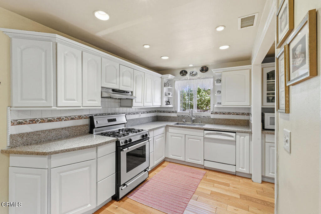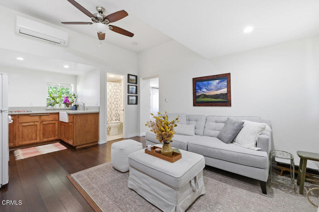 Two homes on one lot. The original and charming 1948 home (3 Bedroom and 1 bath) and a detached 2023 ADU (1 bedroom and 1 bath). Both have own entrances and yards. Original home greets you with a secluded garden and welcoming front porch. The living area showcases front porch, wood flooring, updated dual-pane windows, and wood burning fireplace. The large dining room flows into a redesigned and enlarged kitchen featuring quartz countertops, modern cabinetry, stainless steel appliances and generous storage. The bedrooms have mirrored closet doors. Interior laundry closet. Recent enhancements include upgraded 220-amp electrical service, a Lennox HVAC system, dual pane windows throughout newer interior and exterior paint and newer main gas line. The separate accessory dwelling unit (ADU), completed in 2023, offers its own entrance, yard, and stylish interior. The living room features Wailua Luxury plank flooring, contemporary dual paned windows, ceiling fan and recessed lighting. The kitchen is outfitted with a floating bamboo floor, quartz countertops, a deep farmhouse sink and a garden window. The big bedroom features a huge closet, two windows and skylight adding lots of natural light. The ADU is equipped with a Mitsubishi dual-zone climate system, newer wiring and plumbing, and energy-efficient spray foam insulation. It enjoys its own private street-facing entry and separate backyard. Situated on a corner lot, the property includes a two-car covered carport. Nestled near the scenic Ojai Valley and its popular bike trail, the location is within walking distance to a local market, coffee and donut shops and popular breakfast spot. Oak View offers easy access to both downtown Ojai and Ventura, with the ocean just a good bike ride away. Whether you’re heading to the beach or exploring nearby vineyards, this setting offers convenience and charm.