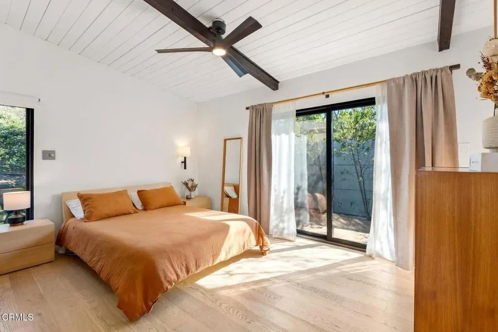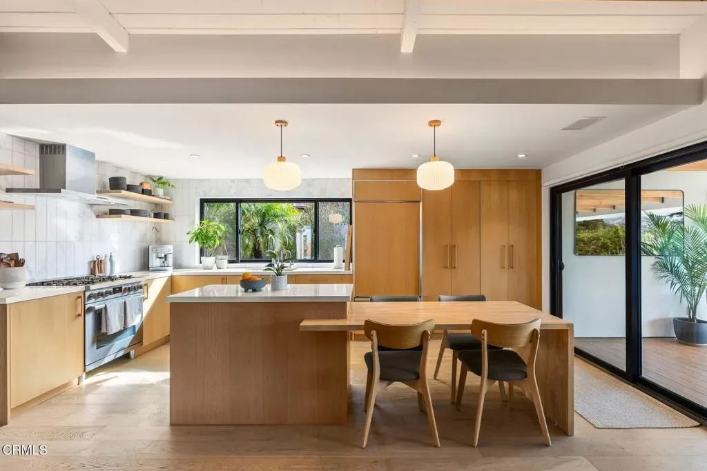 Welcome to 130 Olive street. This mid-century modern home is ideally positioned in the OjaiValley between downtown Ojai and the Ventura coastline. Enjoy the best of bothworldsboutique shops, restaurants, and farmers markets in Ojai, or your toes in the sand injust 15 minutes. Extensively remodeled in 2023, this three-bed two-bath home was rebuilt with intention and craftsmanship at every level. The chef’s kitchen is a true centerpiece, featuring high-end appliances, custom cabinetry, and a refined material palette that blends warmth with modern simplicity. Both bathrooms have been fully renovated with floor-to-ceiling porcelain tile for a clean, spa-like aesthetic. Major system upgrades provide both beauty and peace of mind: new white oak flooring throughout, rot- and insect-resistant Japanese wood siding, a new shingle roof with high-performance membrane underlayment, new copper plumbing, updated electrical wiring, and new insulation throughout. Windows were replaced and thoughtfully enlarged to maximize natural light and strengthen the seamless indoor-outdoor connectionhallmarks of ideal California living. Experience iconic mountain views from the covered outdoor patio that extends directly from the main living areas and adds approximately 380 square feet of usable living space creating the perfect setting for dining, entertaining, or simply enjoying Ojai’s year-round climate. The attached two-car garage offers excellent storage, while the added windows make it equally well-suited for conversion to a studio, office, or workshop. This is a rare opportunity to own a turnkey architectural home that blends mid-century character with modern performancejust minutes from town and the coast.