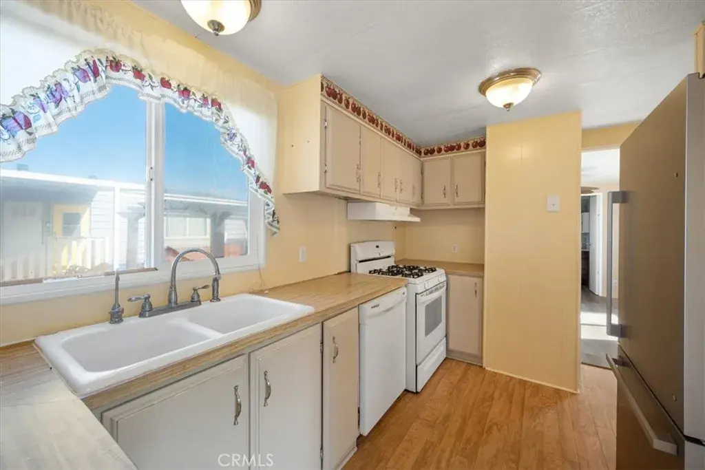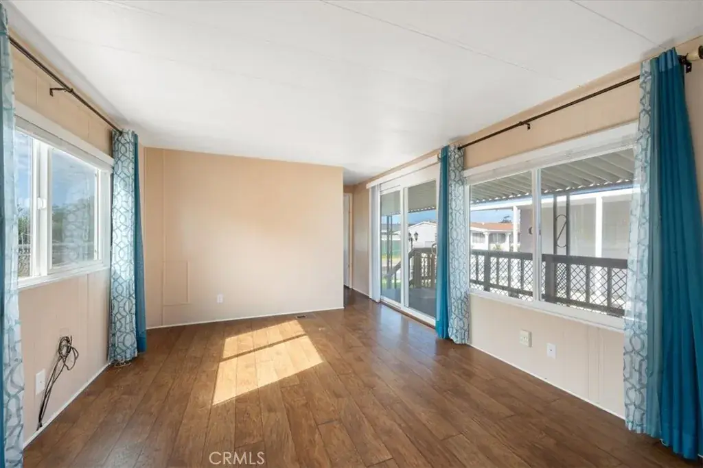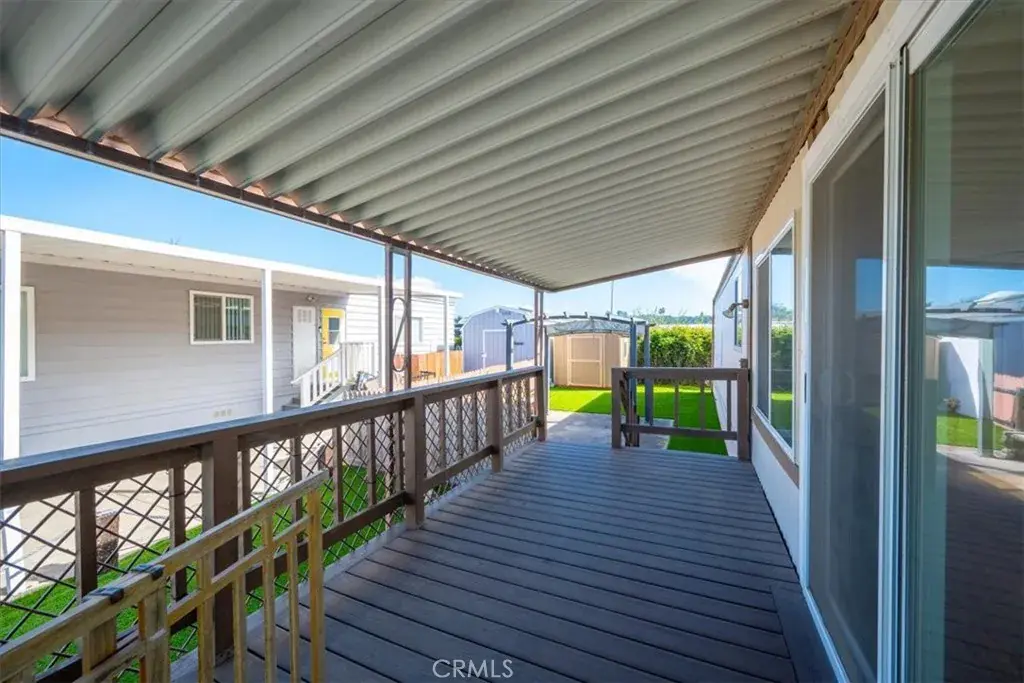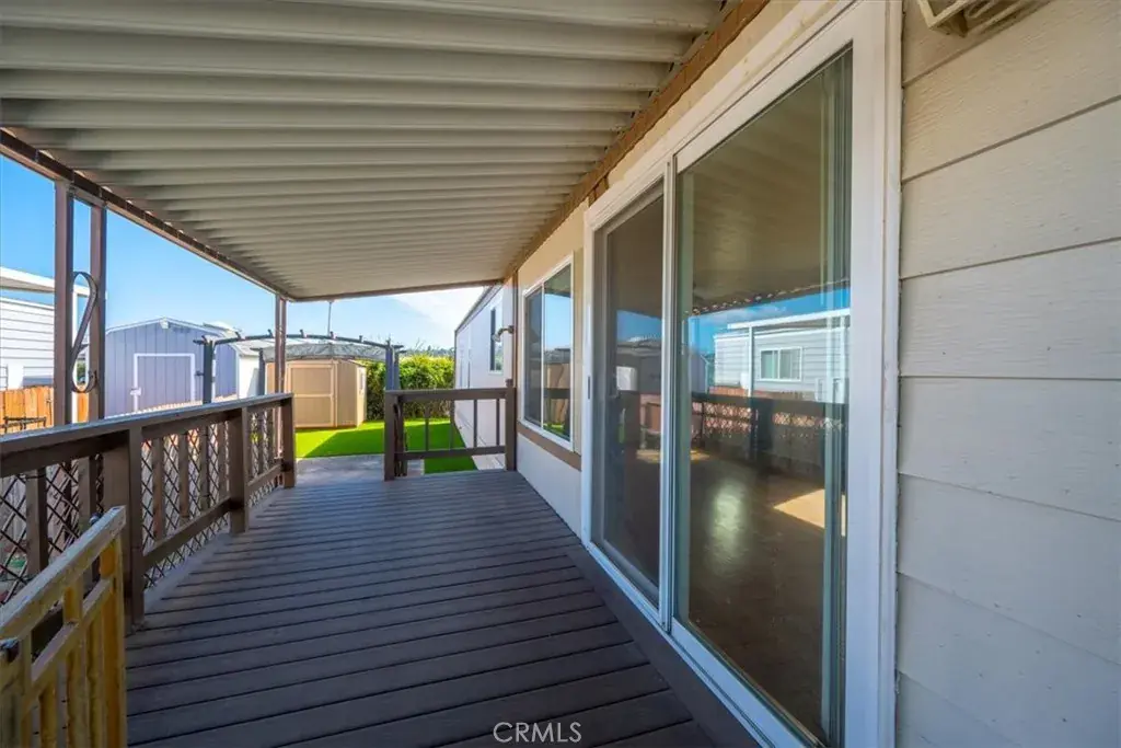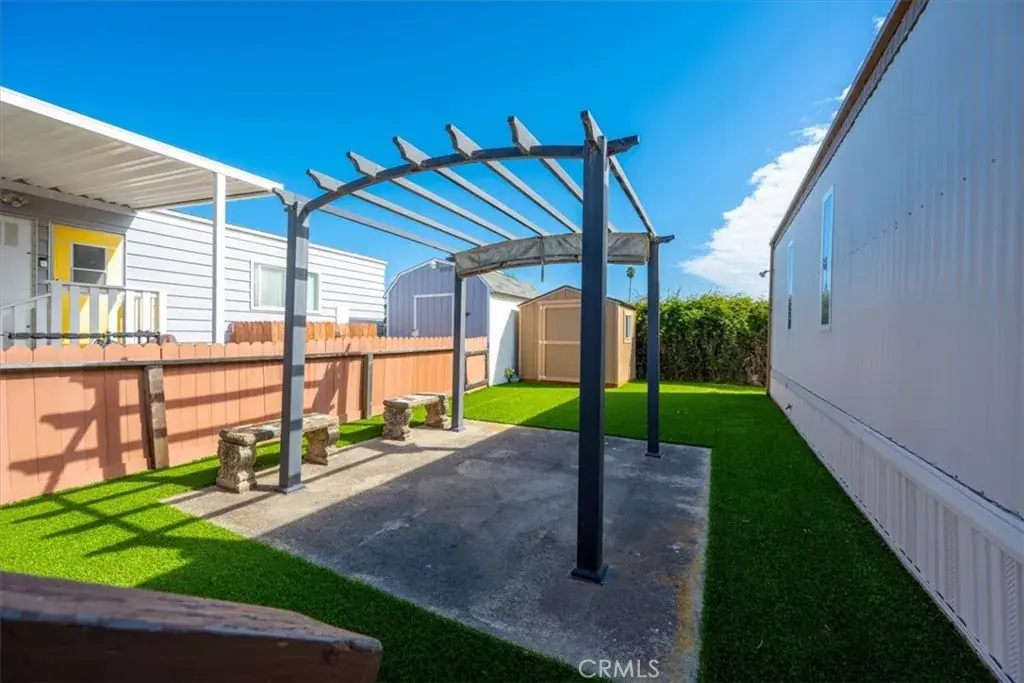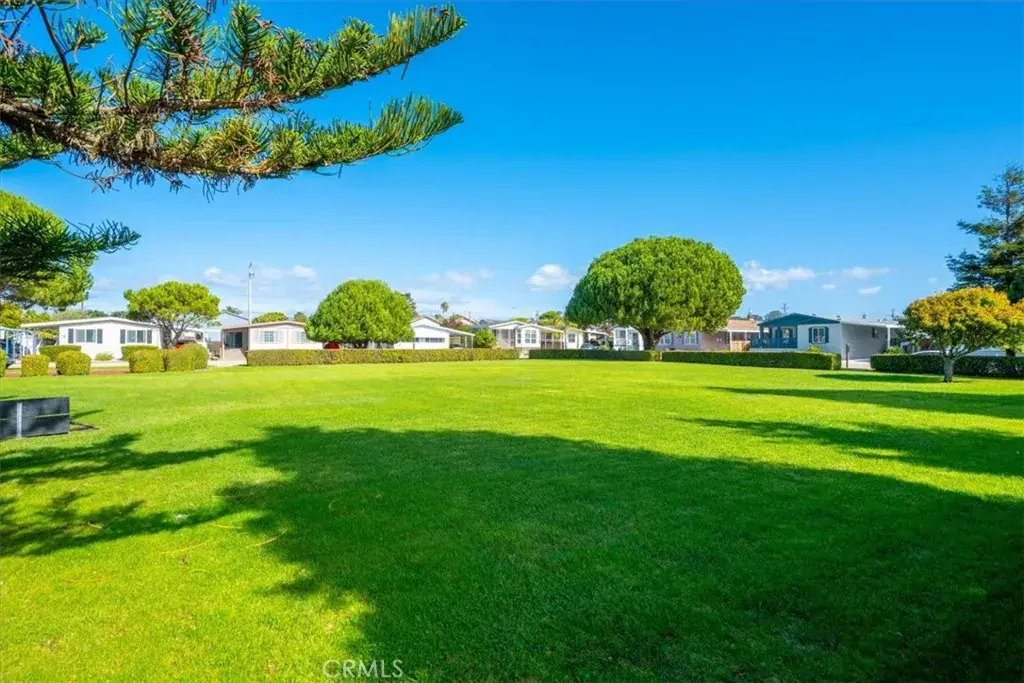 A 2 bedroom, 2 bath mobile home on owner own 1/70 share of the park, at the back of the park for ultimate privacy! This single wide has lot of yard space equip with artificial grass for outdoor entertaining and relaxing. The side yard offering a large gazebo for shade and hanging out with extra built in seating next to the gazebo. The backyard also equip with a storage shed in great shape. Lush greenery grows behind the home giving extra privacy. Upon walking through the front door you are greeted by a large open living room with a lot of natural lighting. The kitchen has lots of counter top space for cooking with a large sink. Great shape vinyl flooring runs throughout the home. Dual pane windows throughout keep it well insulated. The home has 2 Different guest suites, on each side of the house offering privacy for sleeping purposes, or an extra room for storage/office space. You’ll also find a completely remodeled full bath with a tub and tiled stand up shower. Along with it’s own laundry room with a stackable washer and dryer. The park offers a pool, gym and clubhouse and a lot of wide open yard space for lunches and relaxing. Just a short walk to the beach. You can’t beat the location and price. Also comes with 2 designated parking spaces up against the the chainlink fence! New water heater and regular heater. HOA is $265 per month. Call your favorite realtor today!