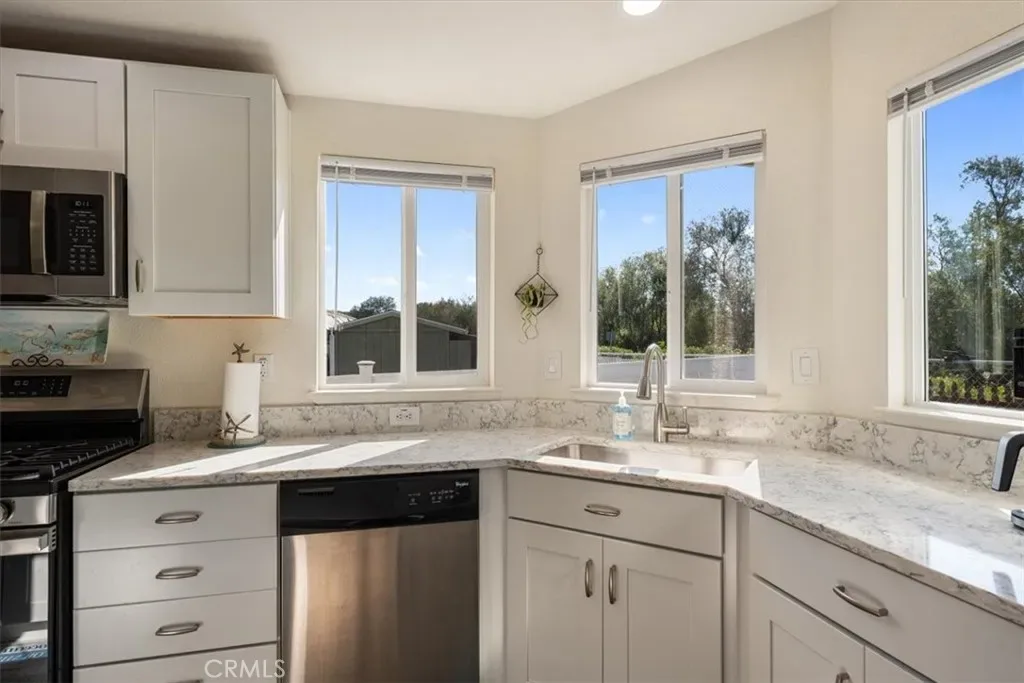 Showstopper! This home looks like a model and is in pristine condition. It’s a highly sought-after back-end unit with incredible views of nature, the yard, and garden area. Stamped stained concrete and vinyl fencing welcome you at the entrance. Inside, you’ll find beautiful laminate wood floors, high ceilings, and so much more. The open-concept updated kitchen with features stainless steel appliances. quartz counter tops, pull out shelves, slow closing drawers and cabinets. The great room has large windows that look to lush greenery and the garden area. There are two spacious bedrooms and a large office currently set up with a queen-sized bed for guests. The new primary shower boasts a rain shower head and extra space; thoughtful touches include heated toilet seats and lighted motion-activated faucets for nighttime use. The large living room overlooks trees, lush greenery, and the occasional sounds of Arroyo Grande Creek. Outside, the generous yard offers a covered patio and a large area perfect for entertaining large groups. A large work shed/shop, with access to a private common area perfect for gardening. A nearby walking trail leads straight to the beach, where you can enjoy ocean breezes and stunning sunsets.