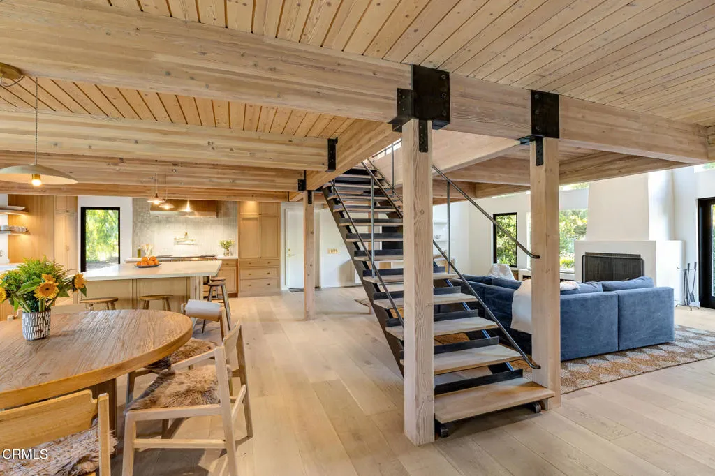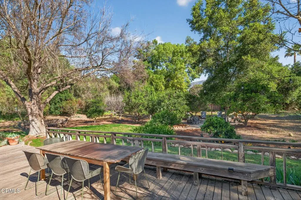 Welcome to your peaceful Ojai retreat. Set on a lush, private acre just five minutes from downtown, this fully remodeled home offers the perfect blend of style, comfort, and connection to the outdoors. Inside you will discover a redesigned interior featuring vaulted ceilings, clean minimalist lines, and an abundance of natural light. The gourmet chef’s kitchen is a centerpiece, complete with high-end finishes with custom white oak cabinets, a Wolf flat top range and speed oven, Miele dishwasher, Sub Zero fridge, handmade tile backsplash, marble countertops and deVol light fixtures.The home offers four spacious bedrooms and two beautifully updated full bathrooms with an impressive wood burning plaster fireplace with a gas starter in the living room creating a comfortable entertaining space with its open floor plan to the kitchen and dining room. Additional features include newer HVAC, updated electrical and plumbing, a two-car attached garage, loft upstairs and a separate detached structure, perfect for a future ADU, artists studio or workshop.Outside, the expansive grounds include a sparkling pool, two fire pit areas, and mature fruit trees. Surrounded by mountain views, quaint shops and restaurants and just steps from scenic trails of the Ojai River Preserve, with hiking, biking and horseback riding, this property invites you to slow down and soak in the serenity.Embrace the Ojai lifestyle – peaceful, spacious, and move in ready, all just minutes from town.