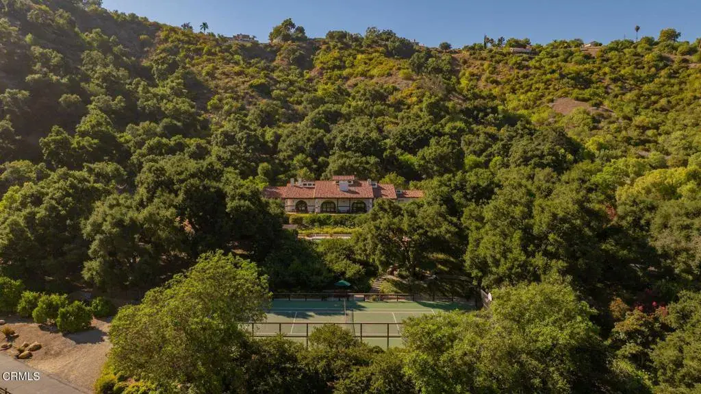 Oak Knoll Ranch presents a rare opportunity to own a quintessential and estate level Ojai compound – set across 22 acres spanning two legal parcels. Framed by sweeping mountain vistas and surrounded by remarkable privacy, this estate captures the natural beauty and peaceful character that defines Ojai living. Beyond the welcoming courtyard entry, the residence opens to dramatic vaulted ceilings with exposed beams, creating a warm yet expansive atmosphere. The thoughtfully designed floor plan includes four spacious bedroom suites, offering both comfort and privacy for residents and guests alike. The property is designed as a true compound, featuring a detached guest suite, a separate garage and utility structure, and dedicated ranch foreman’s quarters adding additional flexibility. One can build another estate level home and guest house on the 2nd parcel, currently planted with lemons and other variety fruit trees being fed by a private well.The park like outdoor setting includes amenities that enhance both leisure and lifestyle. A pool terrace that canopies above the tennis court area, provides recreation against a backdrop of mountain views. For equestrian pursuits, the ranch includes a four-stall barn with tack room, arena, and hot walker, offering well-equipped facilities for horses or other livestock. Oak Knoll Ranch embodies the space, versatility, and understated elegance that define an exceptional Ojai estate — a private retreat designed for both refined living and relaxed country enjoyment.