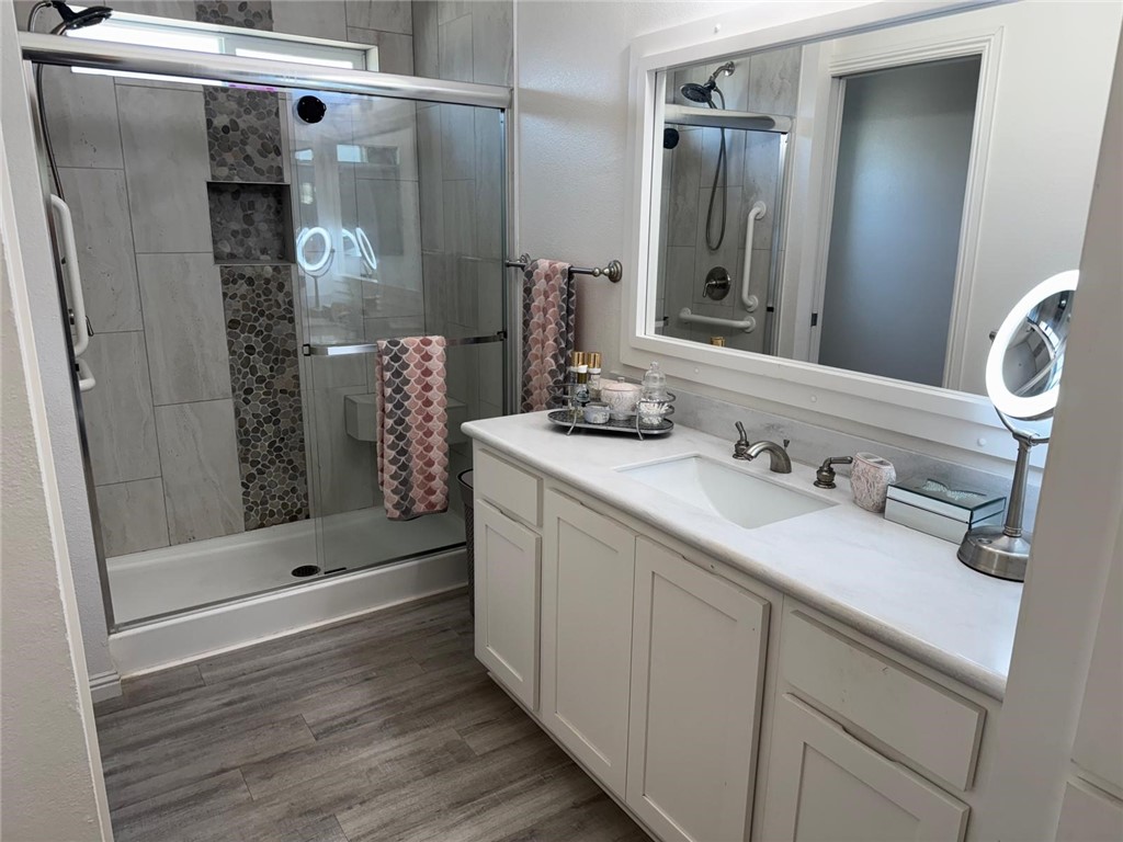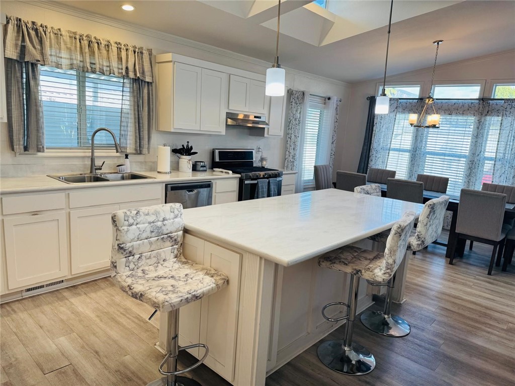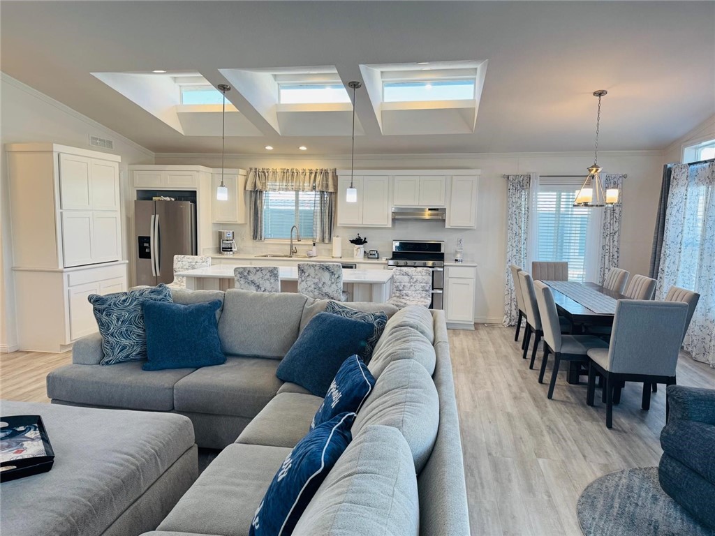 Additional highlights include a handicap-accessible automatic aluminum side lift with an attached aluminum deck and stairs, an easy-access carport accommodating two vehicles (or an SUV), guest parking conveniently located directly in front, a storage shed, extensive under-home storage, and a backyard pergola perfect for outdoor enjoyment.