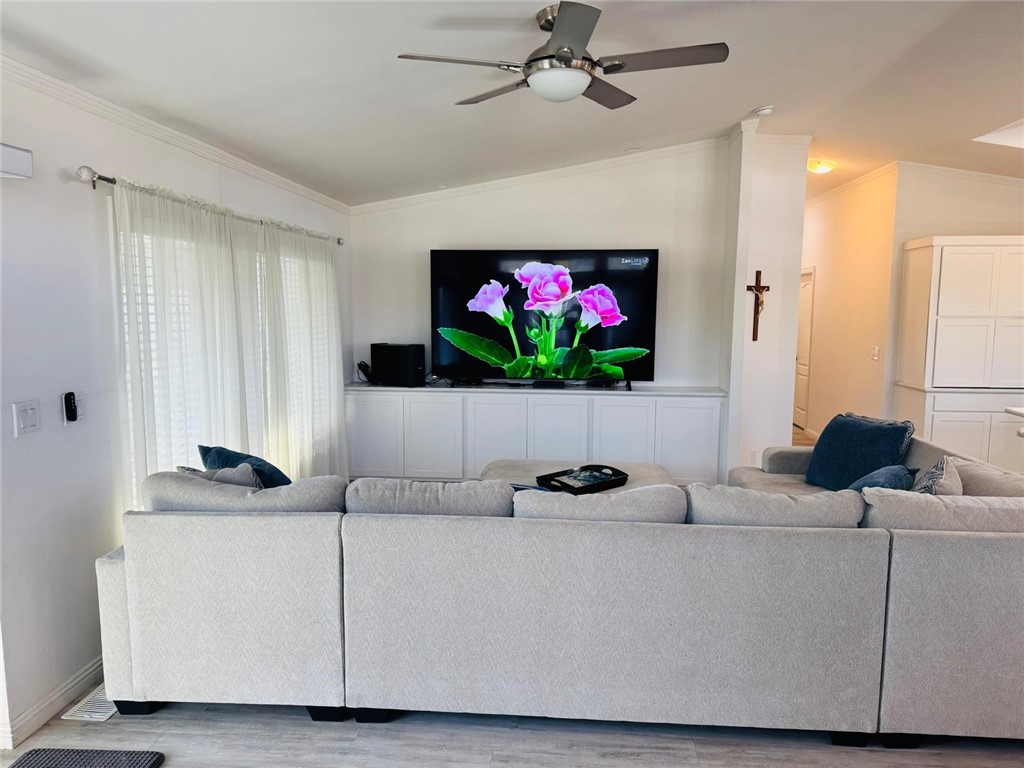 This gorgeous contemporary home features wrap-around front windows and a large deck, perfectly positioned to capture breathtaking mountain views and the valley’s natural beauty. Inside, the spacious open-concept floor plan is bathed in natural light, highlighted by cathedral ceilings with crown molding, clerestory double-pane windows, and skylight solar tubes that enhance the bright, airy feel.