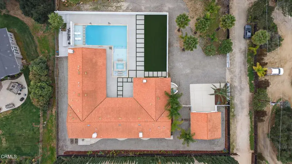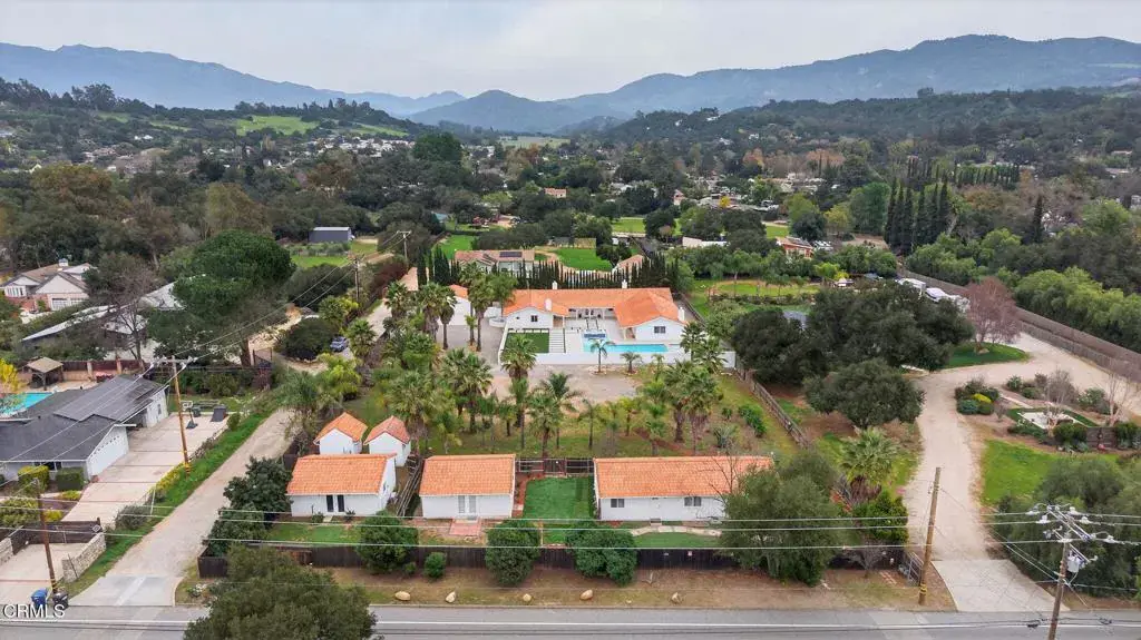 Exceptional gated Ojai compound with four independent structures, and a resort-style pool courtyard on 1.41 private acres. Designed as a true multi-structure estate, the property spans four separate buildings making it ideal for multi-generational living, creative use, or boutique retreat potential. The resort-style pool courtyard anchors the estate and delivers that private resort experience with an approximately 40-foot pool, dual Baja shelves, six waterfalls, a dramatic 20-foot fire wall, an inset spa, and a glow-in-the-dark pathway, all surrounded by new luxury turf and is visible from much of the main residence. The over 4,000-sq-ft main home features 6 bedrooms and 6 bathrooms with high ceilings, abundant natural light, and seamless indoor-outdoor flow, along with an attached mother-in-law suite offering its own private exterior entrance for added independence. A discreet concrete ramp serves the rear primary suite, providing elegant accessibility without compromising design. A separate 3-bedroom, 1-bath guest house includes its own gated street entrance, open kitchen, exterior laundry, fenced yard with turf, and a mini-split HVAC system for individualized year-round comfort. Two additional structures were used for family members with each having 1-bedroom, 1-bathroom, private entrances, fenced yards, and mini-split systems, making them ideal for home offices, studios, family or visiting friends. Mature fruit trees are scattered throughout the grounds, while a large open central area creates natural separation between structures and offers future possibilities such as gardens, recreation space, additional parking, or expansion. This rare Ojai retreat blends privacy, versatility, and long-term potential, offering a compound-style layout designed to support the way you live today while leaving room to grow tomorrow.
