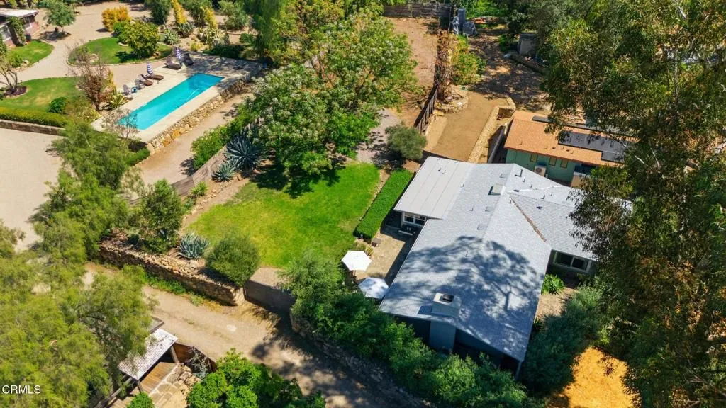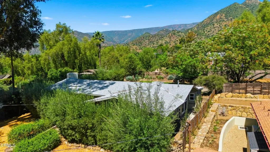 Tucked into Ojai’s coveted East End, this private half-acre retreat captures the essence of Ojai living peaceful, scenic, and effortlessly inviting with views of the Topa Topa mountains.Surrounded by mature olive and eucalyptus trees, the fully fenced/gated property offers a rare sense of privacy and tranquility, anchored by a stunning Chinaberry tree that shades the expansive backyard. Meandering stone walkways and rock walls enhance the natural beauty, creating a setting that feels both grounded and serene.Inside, the home blends warmth and comfort with thoughtful updates. Wood floors run throughout, leading to an oversized living room with a fireplace an ideal space to gather or unwind. The kitchen and bathrooms have been tastefully refreshed, complemented by newer windows, sliders, and a recently updated roof, offering both charm and peace of mind.With three bedrooms and two-and-a-half baths, the layout is both functional and inviting, perfectly suited for full-time living or a weekend escape.The generous grounds present an exceptional opportunity to expand whether envisioning a pool, guest house, or ADUcreating the potential for a true Ojai compound.Set against a backdrop of mountain views, lush greenery, and quiet surroundings, this is more than a home it’s a lifestyle retreat offering space, privacy, and endless possibility in one of Ojai’s most desirable locations.