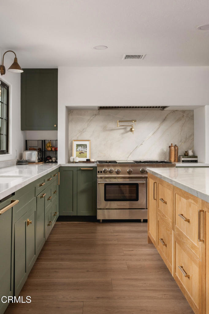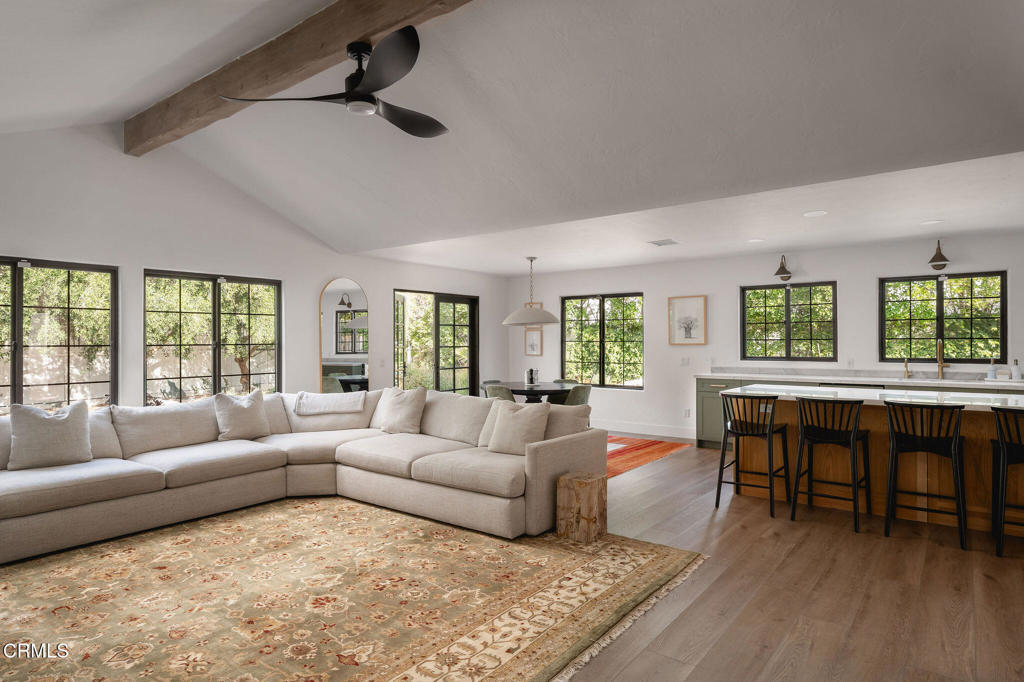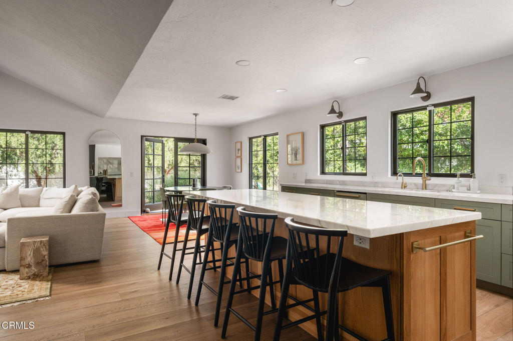 1450 S. La Luna is ideal for someone with a full, active life who wants to come home to a space that feels calm, elegant, and effortless. Newer built by Ojai standards, this single level Spanish influenced home was designed for low maintenance living while still offering architectural character and warmth. Located on a small cul de sac, the property offers a sense of privacy and protection while benefiting from convenient access to Highway 150 and 33, making it well suited for buyers who value ease of movement and connection. The home offers over 2,500 square feet and has been completely renovated with attention to detail, featuring arched walkways and doorways, tall ceilings, abundant windows, and generously sized rooms filled with natural light. The heart of the home is the open kitchen and family room, a welcoming and social space designed for cooking, gathering, and entertaining. Bedrooms are located on one wing of the home, providing separation from the main living areas. The primary suite feels spa like and romantic with a wet room style bath and a sense of retreat. A detached casita with kitchenette and private bathroom offers flexibility for guests, work, or creative use. Outdoor spaces are intentional, manageable, and easy to enjoy with a fenced entry courtyard, raised garden beds, fruit trees, and a detached three car garage. This home is well suited for someone who values design, simplicity, and convenience and wants a beautiful low maintenance place to land while staying connected to the Ojai Valley.Property Highlights: This single level home offers four bedrooms and expansive living spaces designed for everyday comfort and entertaining. The open kitchen, family, and dining area features high ceilings, abundant light, and French doors connecting indoors and out. The chefs kitchen was completed approximately two years ago and includes a commercial grade range and oven with pot filler, a large quartz island, extensive custom cabinetry with pull out organizers, dedicated pantry storage, and a built in refrigerator and freezer. Beverage and wine refrigeration are included. The family room offers high ceilings, large windows, and generous wall space for art. Two bedrooms share a Jack and Jill bathroom and feature high ceilings, ceiling fans, and courtyard views. The fourth bedroom can function as an office or den. Additional features include a well equipped laundry room, side storage for recreational gear, and a detached three car garage.