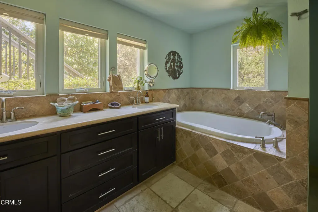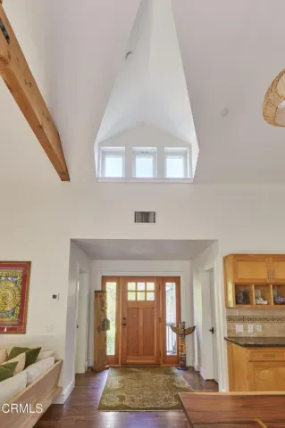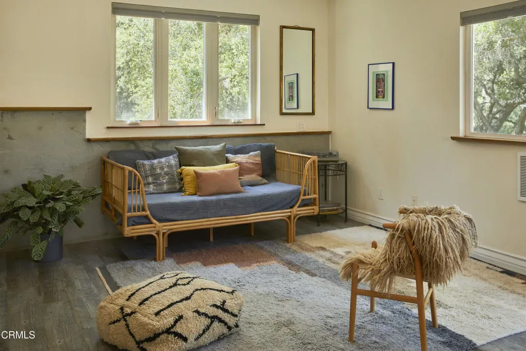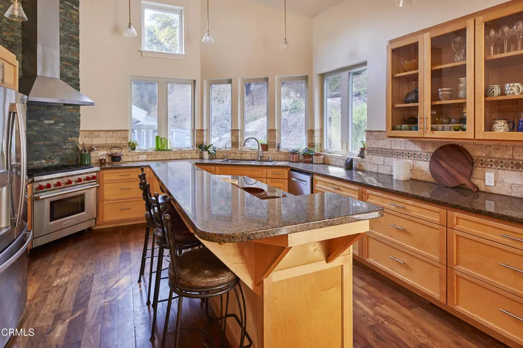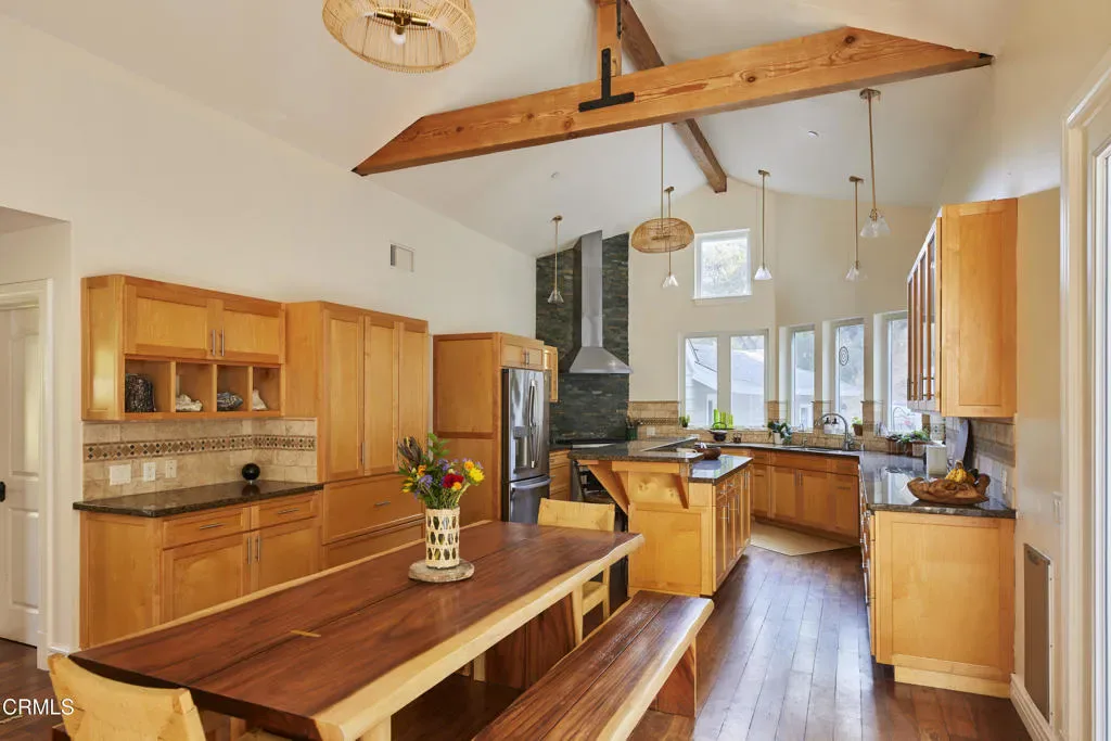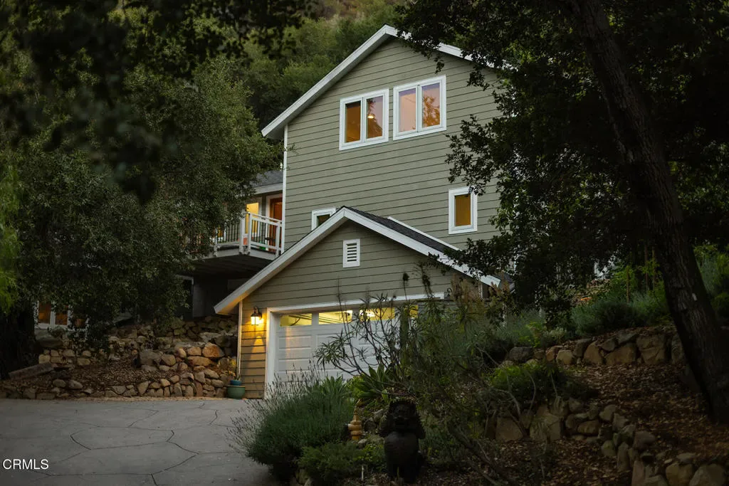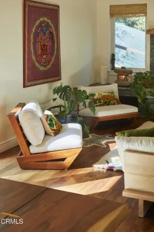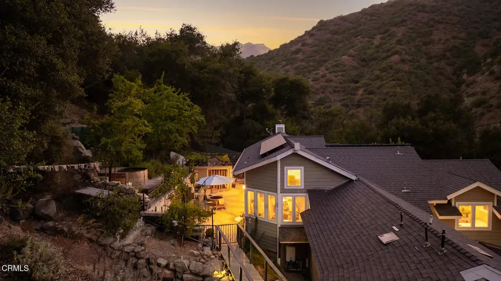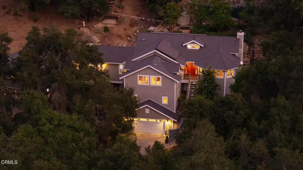 Nestled in nature, surrounded by majestic oaks and the gentle sounds of flowing creeks, this extraordinary Ojai estate — with 2 private guest units and an in-home spa — offers more than a home. It offers a way of life. Just 10 minutes from downtown yet a world away, it combines peaceful seclusion with convenient access to the town’s vibrant community. Hiking trails, hot springs, and endless outdoor adventures are minutes from your doorstep, with the river just a short walk away, making nature your constant companion.The main residence spans 3,207 square feet of beautifully crafted living space. Double-height vaulted ceilings, exposed wood beams, and a dramatic stone fireplace anchor the great room, while expansive windows bathe the home in natural light. With four bedrooms, three bathrooms, and a thoughtfully designed office infused with creative energy, the home provides ample space for both relaxation and inspiration. The primary suite is a true retreat, featuring a private treetop balcony, generous walk-in closet, and personal cedar sauna. Designed for chefs and entertainers alike, the gourmet kitchen boasts a 48′ Wolf range, a large central island, and seamless flow into the home’s gathering spaces.Beyond the main residence, the property includes 2 large, private attached guest houses, featuring a charming 1-bed, 1-bath home with private patio and a spacious studio apartment in the treetops. Both boast high ceilings and enormous windows to complement the surroundings and take in nature. Each space contains a full kitchen as well as a full bath. This flexible layout is ideal for rental income, multi-generational living, or hosting guests with ease. Altogether, the estate offers an impressive 4,722 square feet of living space set on more than two acres of hillside beauty.A rare and whimsical offering, this one-of-a-kind property with sweeping views and star-filled nights sits nearby all the wonderful cultural experiences Ojai has to offer. A place to restore and renew, without sacrificing comfort or convenience.
