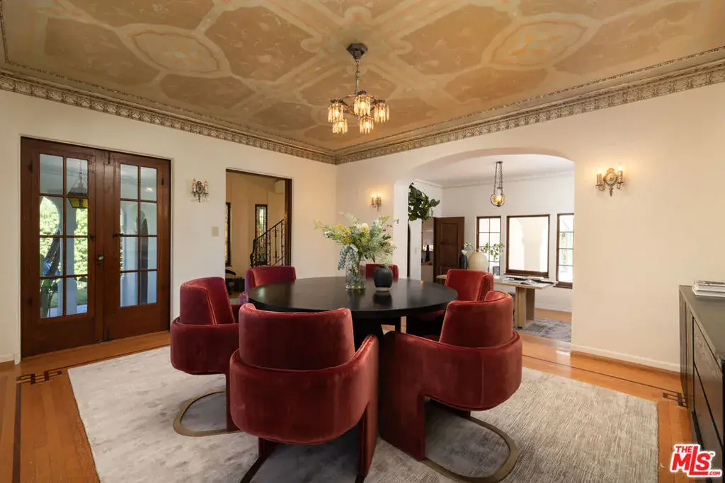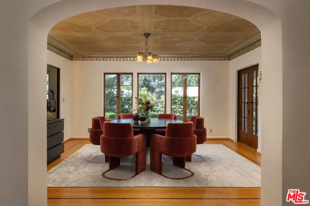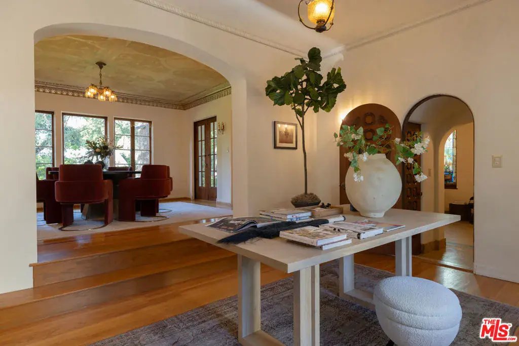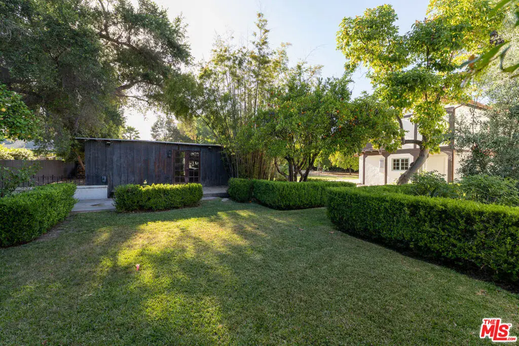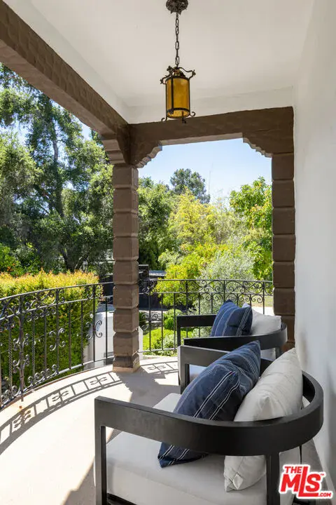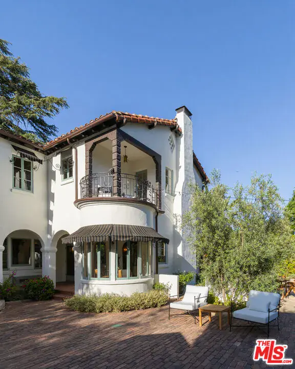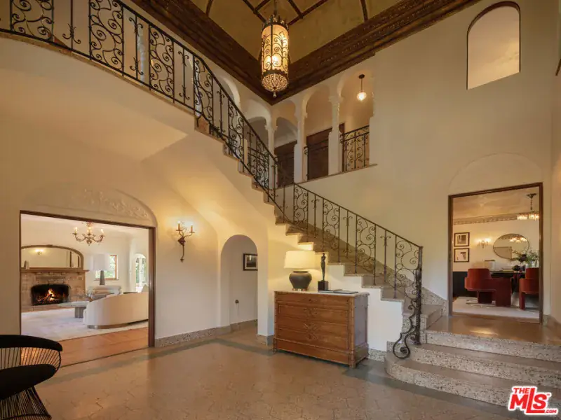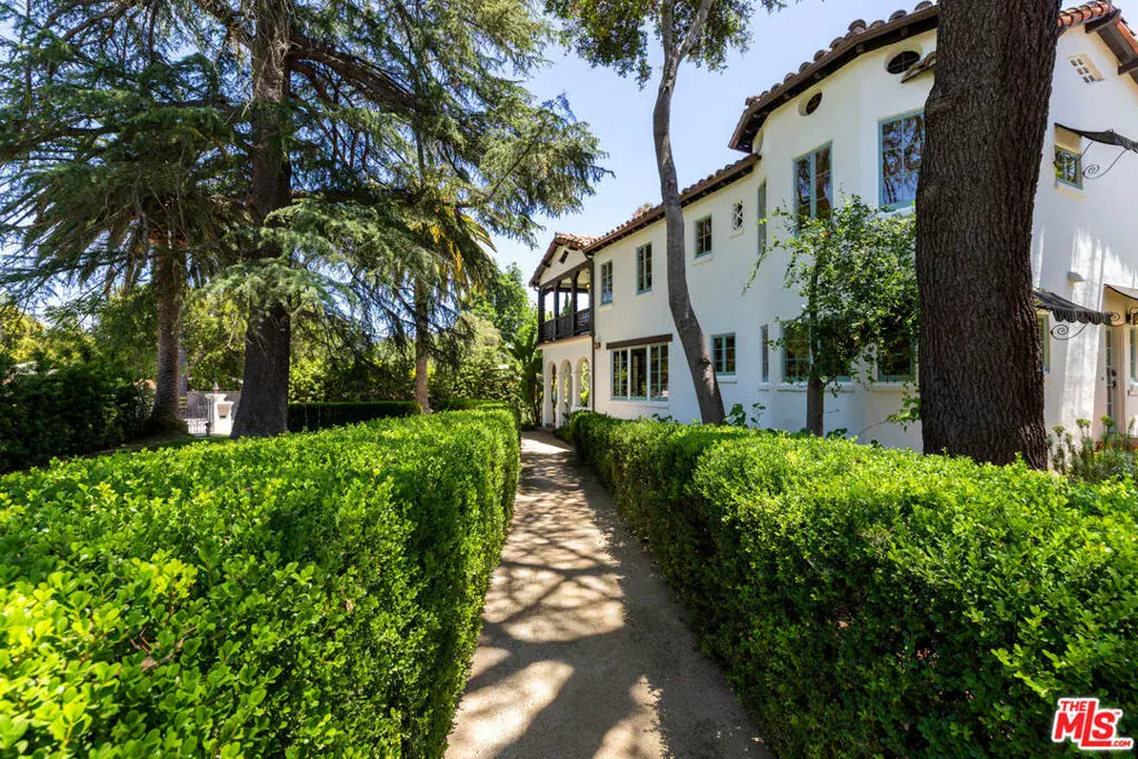 Welcome to The Acacia Mansion, a landmark 1929 Spanish Colonial Revival estate nestled in the heart of Meiners Oaks, Ojai. Situated on an expansive 0.83-acre corner lot, this extraordinary property offers nearly 4,300 square feet of exquisite living space and a rare opportunity to own a piece of Ojai’s cultural and architectural legacy.Designated Ventura County Landmark No. 170 and eligible for the Mills Act, this historic residence with Moorish influences and many original details, was originally built for Theosophists David and Madeline Baird, followers of Krishnamurti. Over the years, it has hosted luminaries such as Aldous Huxley, Annie Besant, Marc Chagall. and George Bernard Shaw. Every element of the home reflects its storied past, from the grand pink-marble staircase and hand-carved mahogany doors to gold-leaf ceilings and two original Ernest Batchelder fireplaces. The main residence welcomes you with a breathtaking two-story formal foyer, featuring a filigree wrought-iron staircase, stained glass windows, gold leaf stenciled ceilings, and intricately carved mahogany doors. Elegant formal living and dining rooms, a cozy reading room, and a series of soaring ceilings and arched entryways showcase timeless craftsmanship. Rich hardwood and tile flooring, built-in cabinetry, and graceful balconies with wrought-iron railings evoke the artistry of a bygone era. The chef’s kitchen is a culinary delight, outfitted with a La Cornue range, Sub-Zero refrigerator, granite countertops, custom cabinetry, and a walk-in butler’s pantry that preserves original architectural details. Upstairs, you’ll find five spacious bedrooms and a versatile extra room offering endless possibilities. A detached garage is topped by a private one-bedroom guest apartment with its own entrance- perfect as a secluded retreat or guest quarters. Beyond the interiors, the grounds have been thoughtfully updated and landscaped with mature fruit trees and native drought-tolerant plants. A charming brick patio with an aged fireplace creates a magical setting for gatherings.Recent updates include new HVAC systems, copper gutters, restored exterior plaster, period-style awnings, interior and exterior painting, and enhanced landscaping. The Acacia Mansion is a one-of-a-kind legacy property that offers unmatched character, elegance, and a deep connection to Ojai’s spiritual and artistic heritage.