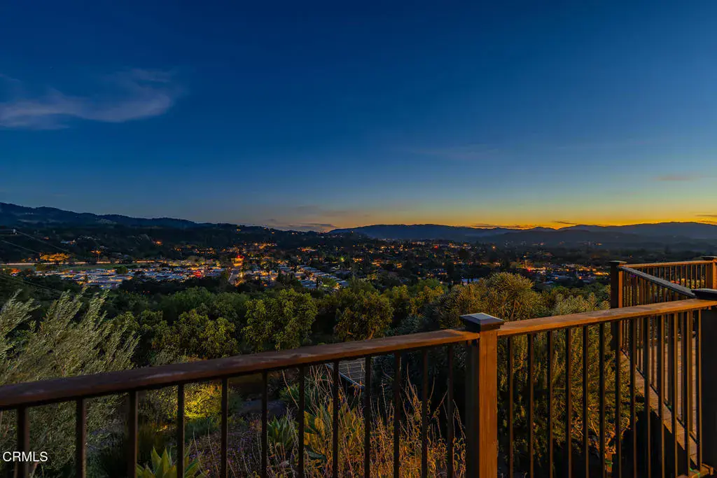 Perched on a private hillside, this gated Ojai property offers sweeping valley views, privacy, and versatility across two residences on approximately two manicured acres. The 4-bedroom, 3-bath main home is positioned to capture panoramic views through floor-to-ceiling living room windows, filling the space with natural light. Wraparound decks provide ideal spaces for outdoor dining, entertaining, and enjoying Ojai’s mountain scenery. Inside, updated bathrooms and tasteful finishes complement the home’s comfortable layout. Additional features include solar, a workshop, two-car garage, and generous parking for guests, storage, or recreational vehicles.The property is enhanced by mature avocado and citrus trees, creating a classic Ojai orchard setting. A separate 2-bedroom, 1-bath guesthouse is located beyond the main gate and includes its own fenced yard, panoramic views, and a private two-car garage. This second residence is well suited for guests, extended family, rental potential, or a private office.A rare opportunity to own a hillside estate offering privacy, views, acreage, and a guest residence, located just minutes from downtown Ojai’s shops, restaurants, and arts community.