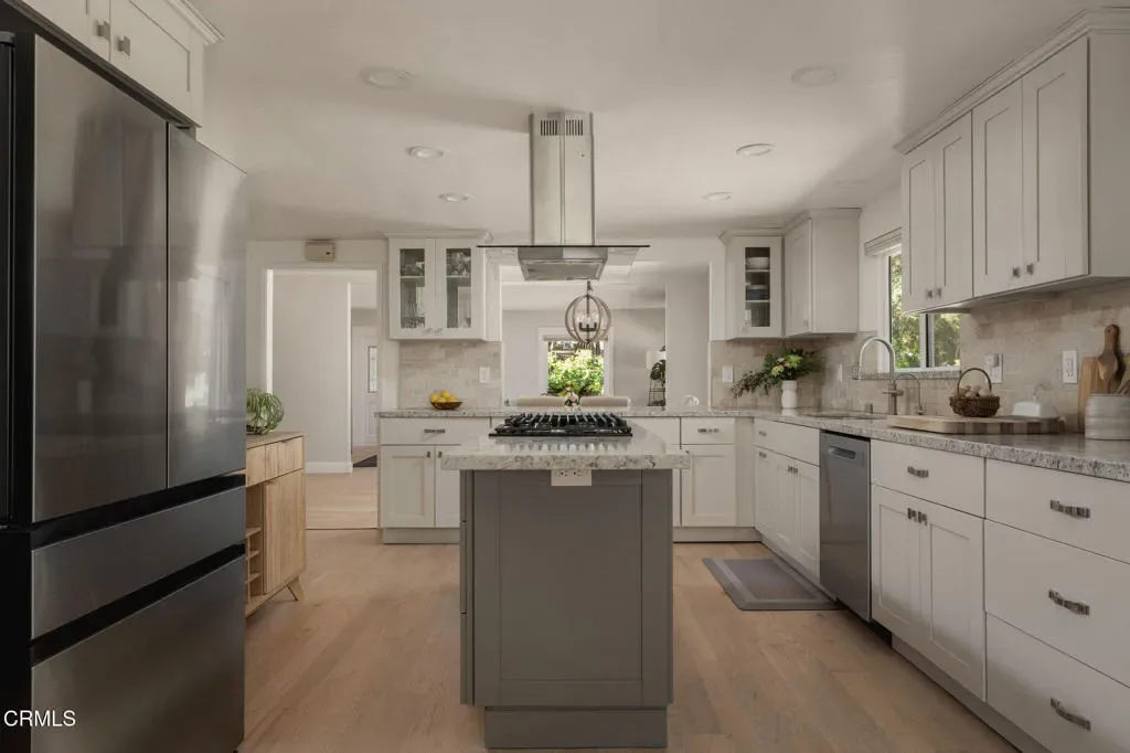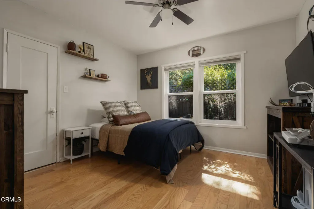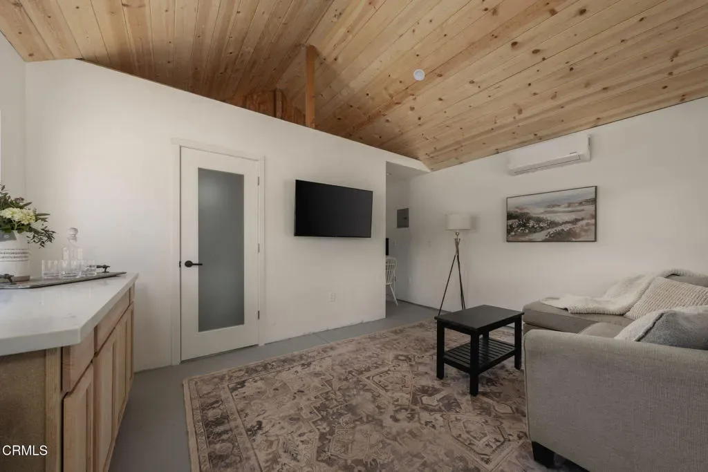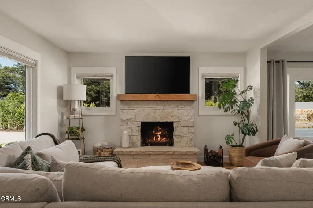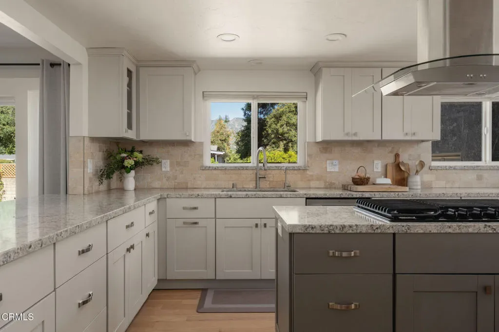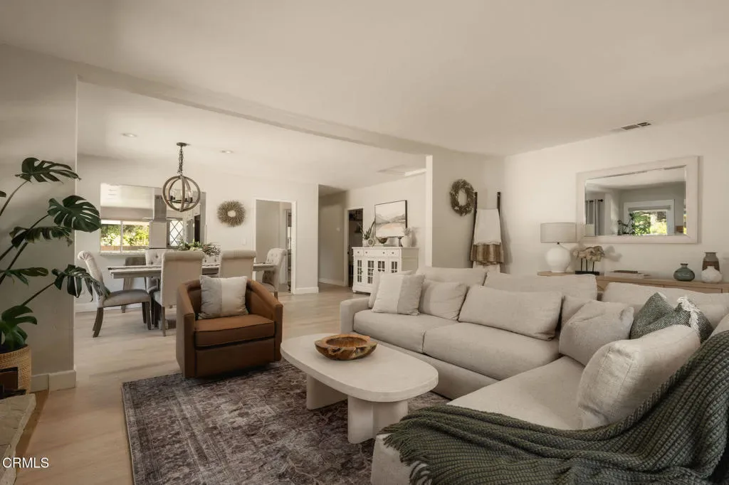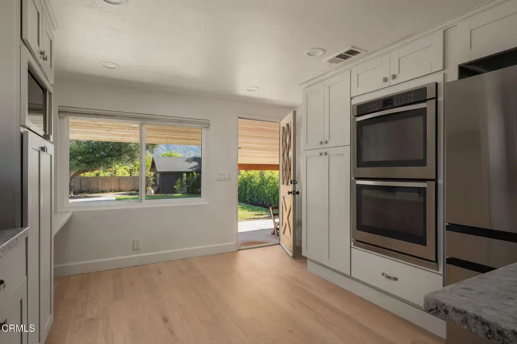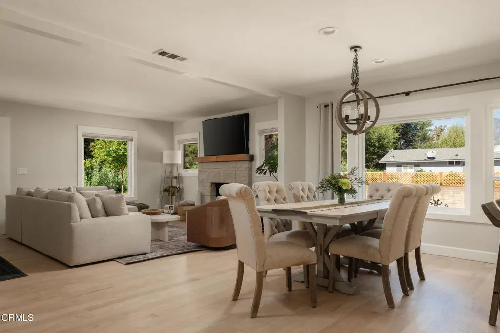 Tucked at the end of a quiet cul-de-sac in Meiners Oaks, this inviting property offers peaceful living with beautiful mountain views, including glimpses of Chief’s Peak. The main residence features 3 bedrooms and 2 bathrooms across approximately 1,600 sq ft, highlighted by recently refinished solid red oak floors, remodeled bathrooms, and a lightly updated kitchen. The inviting living space, centered around a charming fireplace, creates the perfect place to gather, unwind, and feel at home. Set on over half an acre, the property includes an expansive driveway and an oversized two car garage with newly added storage above. Step outside and the property truly begins to unfold. Beneath a newly built patio cover, long afternoons turn into memorable evenings, dining al fresco in the soft Ojai light. The backyard is anchored by a majestic oak tree, with a sparkling pool, cabana, and separate 256 sq ft pool house/office thoughtfully arranged around it. Whether hosting guests, creating a private workspace, or enjoying a quiet moment poolside, the setting offers exceptional flexibility and charm. Beyond the main yard, the property opens to a variety of mature fruit trees including avocado, citrus, persimmon, pomegranate, apricot, and nectarine. With ample space for animals, gardening, or expanded use, the property also includes a large metal-covered barn, a 20-foot shipping container for storage, and convenient rear access from the road behind. A rare opportunity to enjoy space, versatility, and the Ojai lifestyle in a peaceful setting, plus a special feature you’ll have to see in person.