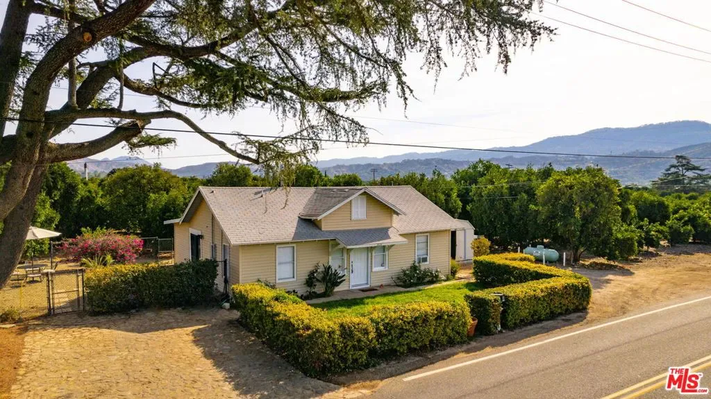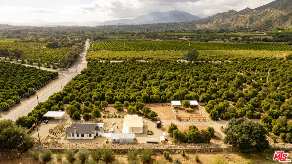 Welcome to Ojai – one of the most relaxed destinations in California – to your very own private sanctuary. Located in Ventura County in the valley under the Topatopa Mountains where one can experience a rare sunrise and sunset to see the ‘pink moment’ when the sun rises and goes down and shines a pink glow on the mountains. About 75 miles north of Los Angeles and 30 miles from Santa Barbara. Escape to this ~38.2 acre exclusive haven – a rare opportunity to own a private retreat, where natural beauty, serenity, and income potential come together in a truly unique opportunity. This estate features expansive orange and lemon groves, breathtaking Topatopa Mountain views, and three renovated fully furnished properties. This extraordinary offering includes five parcels, two APN’s and three separate addresses, all sold together. This peaceful enclave offers warmth, craftsmanship, a place to escape and reconnect. One house is a beautifully restored Spanish-style residence divided into three rental units, maximizing income potential. A detached barn adds versatility. The lot is eligible for an additional 1,800 sf house, with architectural plans provided for future expansion. Currently, all homes are remodeled, furnished and rented on Airbnb (30 day terms) generating steady revenue. Whether you’re seeking a multi-generational retreat, looking for a private estate with income potential, or an investor, this is exceptional. Set amid lush orchards, this peaceful retreat offers a rare combination of large acreage, full amenities, and proximity to Ojai’s vibrant downtown. The property also features a water well (one of the rarest attributes in the area), space for livestock, various amenities, and includes a fully furnished tiny mobile home requiring a permit. The estate includes three separate addresses and residences with a total area of approx. 7,902 sf and ~1,800 sf of potential development: 985 Fordyce Rd: spacious home featuring ~4,342 sf on the first floor, ~810 sf on the second floor, and ~437 sf basement (can function as a wine cellar, bar). 2561 Grand Ave: charming ~1,030 sf residence featuring a free-standing endless pool. 828 Fordyce Rd: well-designed ~1,283 sf home. Potential development: ~1800 sf. Two APN numbers: 028-0-130-010 & 028-0-140-040. Click on the Video & Drone Tour! Seller to consider concessions. Come experience life in Ojai at this truly magical estate!
