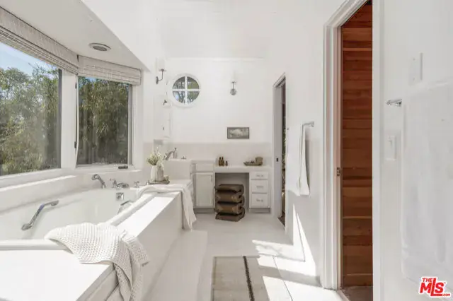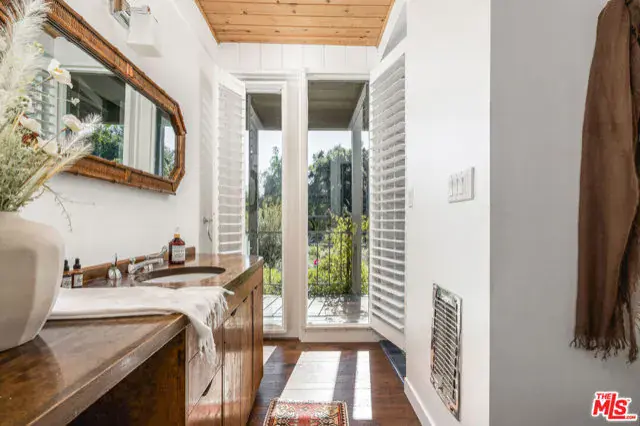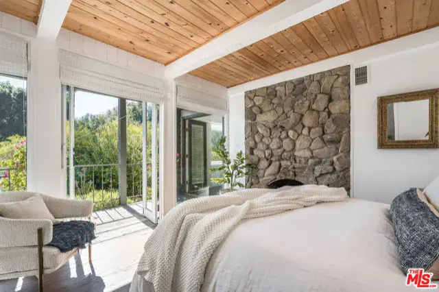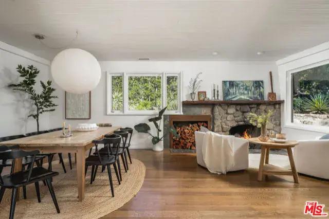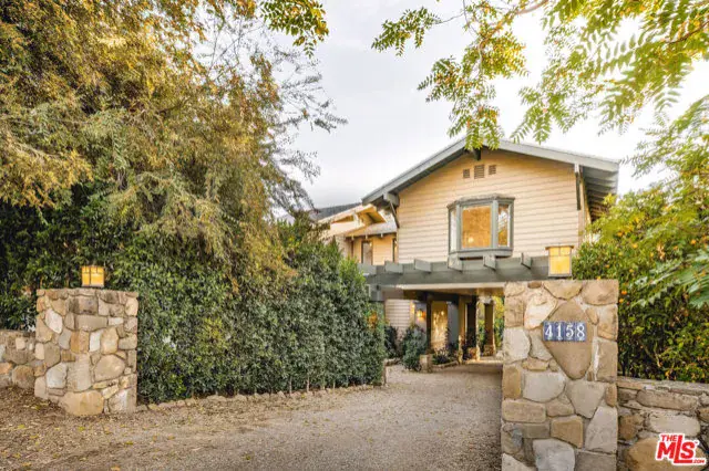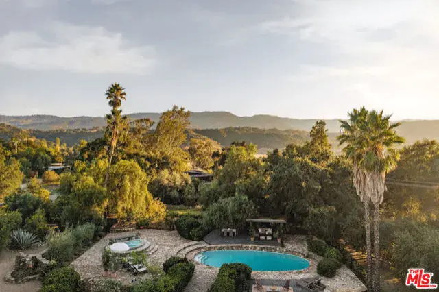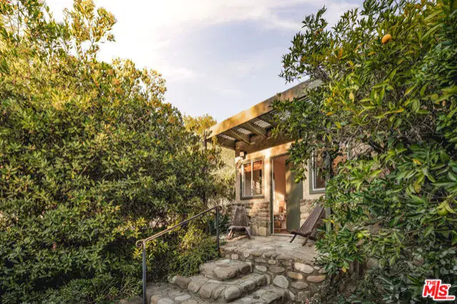 Set against Ojai’s storied East End backdrop, 4158 Grand Avenue is a soulful five-bedroom retreat where timeless design and natural beauty converge. Three of the home’s bathrooms have just been updated with hand-troweled plaster finishes and new flooring – an understated, contemporary refresh that feels chic yet seamlessly in tune with the home’s original character. Hidden behind citrus groves and mature oaks, the property captures the essence of relaxed California living-warm, grounded, and effortlessly elegant. Inside, handcrafted stone fireplaces, vaulted ceilings, and the rich texture of brick-and-wood floors create a sense of comfort and continuity throughout. Sunlight fills each room, highlighting thoughtful architectural details and inviting spaces designed for connection and calm. The kitchen blends vintage charm with everyday functionality, opening toward the gardens and surrounding greenery. Five fireplaces anchor the home’s living and sleeping spaces, including two in the serene primary suite, where a private sitting room, dual baths, view decks, and cedar sauna form a true sanctuary. Throughout the home, French doors and picture windows frame lush garden views, drawing the outdoors in and emphasizing the property’s sense of seclusion and harmony. Four of the five bedrooms include en-suite baths, offering comfort and privacy for family and guests alike. Outdoors, the estate’s saltwater pool, spa, and wisteria-covered pergola unfold amid native landscaping, fruit trees, and meandering paths. Beyond the main residence, a detached three-car garage with art studio, laundry, and full bath expands the home’s versatility, while a separate one-bedroom guest house – privately tucked at the rear of the property – offers a welcoming space for guests or creative pursuits. Located just minutes from Ojai’s farmers market, trailheads, and celebrated local restaurants, 4158 Grand Avenue offers an exceptional balance of privacy, comfort, and connection – an Ojai sanctuary that feels both timeless and alive.