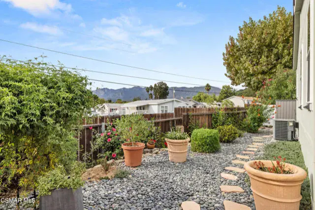 Welcome to this beautiful completely turn-key home built in 2008 located in the sought after Mira Valle 55+ community in the heart of picturesque Ojai Valley situated in a prime location. This spacious 3-bedroom, 2 bath, 1,585 sqft charming home offers beautiful surrounding views of the Ojai Valley mountains and sunsets. The beautiful kitchen was remodeled in 2021, has a center island with lots of storage, Samsung stainless appliances, and lots of cabinet storage with soft close drawers, quartz sink and countertops and a pantry. Enjoy your morning coffee looking out at the view from the breakfast nook. Experience the warmth and cheerfulness of plentiful natural light streaming through all the dual pane windows throughout, sliders and sky light in the kitchen & solar tubes in hallway and guest bathroom. Walk up the steps to the French front doors that lets you into the bright open living room with vaulted cathedral ceiling and a slider that goes out to the wonderful long covered porch with shades with wonderful mountain and sunset views. luxury vinyl plank flooring throughout the home. Enjoy the wonderful wood burning fireplace with a handmade wood mantel on those cozy cool nights. Custom baseboards throughout and recessed LED lighting. Fans are in all bedrooms and livingroom. Primary bedroom features two walk-in closets. The primary bathroom is spacious with a soaking tub and shower. Guest bedroom #2 has a walk-in closet and can access the guest bathroom. The remodeled in 2021 guest bathroom features a nice vanity with soft closed drawers and a tub/shower. Guest bedroom #3/office/den has a slider that goes out to the front porch. The front and back yards feature beautiful drought-tolerant landscaping, Aootek lightening under windows and an Extra-long covered car port area with a tuff shed and another large Rubbermaid storage in the back, as well as guest parking. The home has cement vertical siding all around. Home has a Simply Safe alarm and sensors. Retractable screen doors on the front door and laundry room. Spacious laundry room with plenty of storage cabinets. Tankless Water heater with a scale cartridge filter. Enjoy the club house amenities with a year-round heated pool and spa. Enjoy the pool tables and or just relax reading your favorite book. It also has laundry area and RV storage. Residence can enjoy the many fun events that are often held there. Ideally located near hiking trails, shops and restaurants, and the Ojai trolley stop. So, what are you waiting for, come home, relax and sit back while enjoying the breathtaking sunsets and mountain views of Ojai.