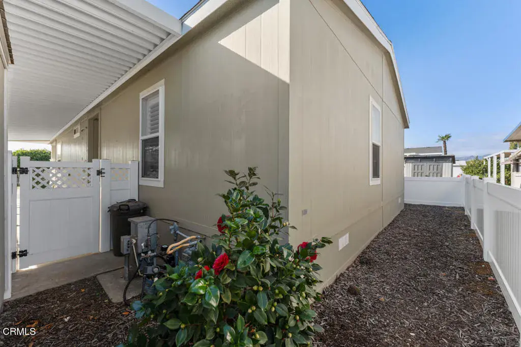 Welcome to this beautiful 2015 manufactured home located behind the gates at Ojai Villa Mobile Estates (55+ park). Conveniently located at the intersection of Hwys 33 and 150. This stylish home has been lightly lived in and you’ll find it is truly move-in ready. The thoughtful finishes enhance this 2 bed/2 bath + office home offering comfort, style, and ease. Inside, you’ll find wide plank wood floors throughout the main living areas, the warmth of newer carpet in the bedrooms, classic plantation shutters that add timeless charm and privacy, plus stylish design elements. Outside you’ll also enjoy a newer vinyl fence, a spacious shed, and carport space for two vehicles. The lovely front porch will call you to enjoy Ojai’s warm evenings or cool mornings while smelling the abundantly blooming roses in the planter adjacent to the front of the home. The park’s amenities are extensive and offer activities for all. The monthly space rent is $958.18.